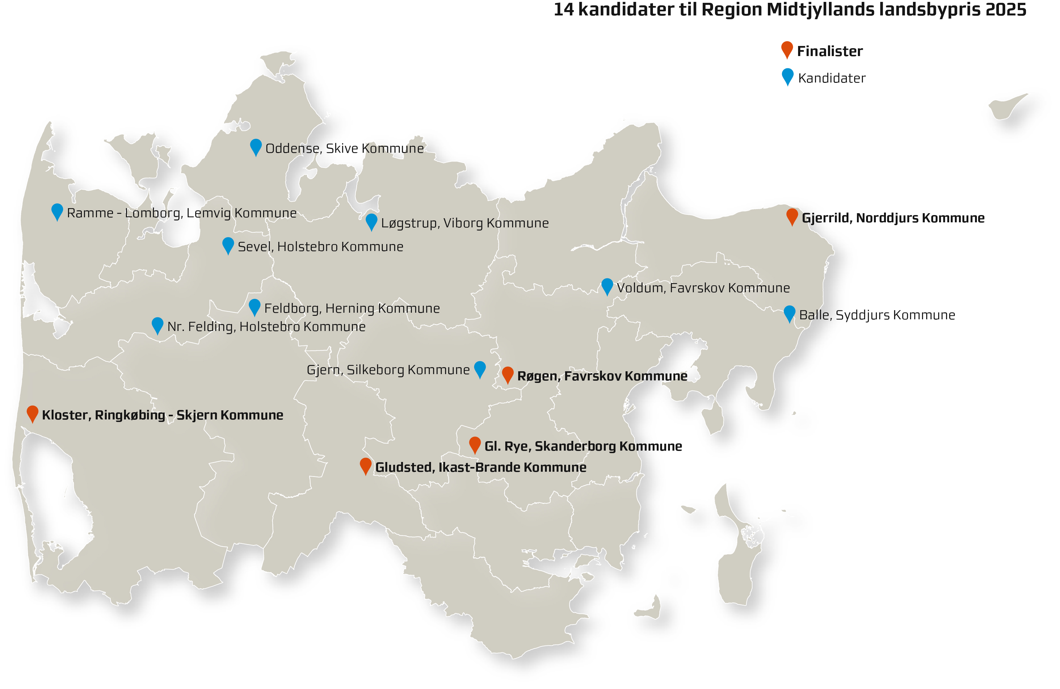 Se hvilke landsbyer i Region Midtjylland, der er med i opløbet om Landsbyprisen på 150.000 kroner.