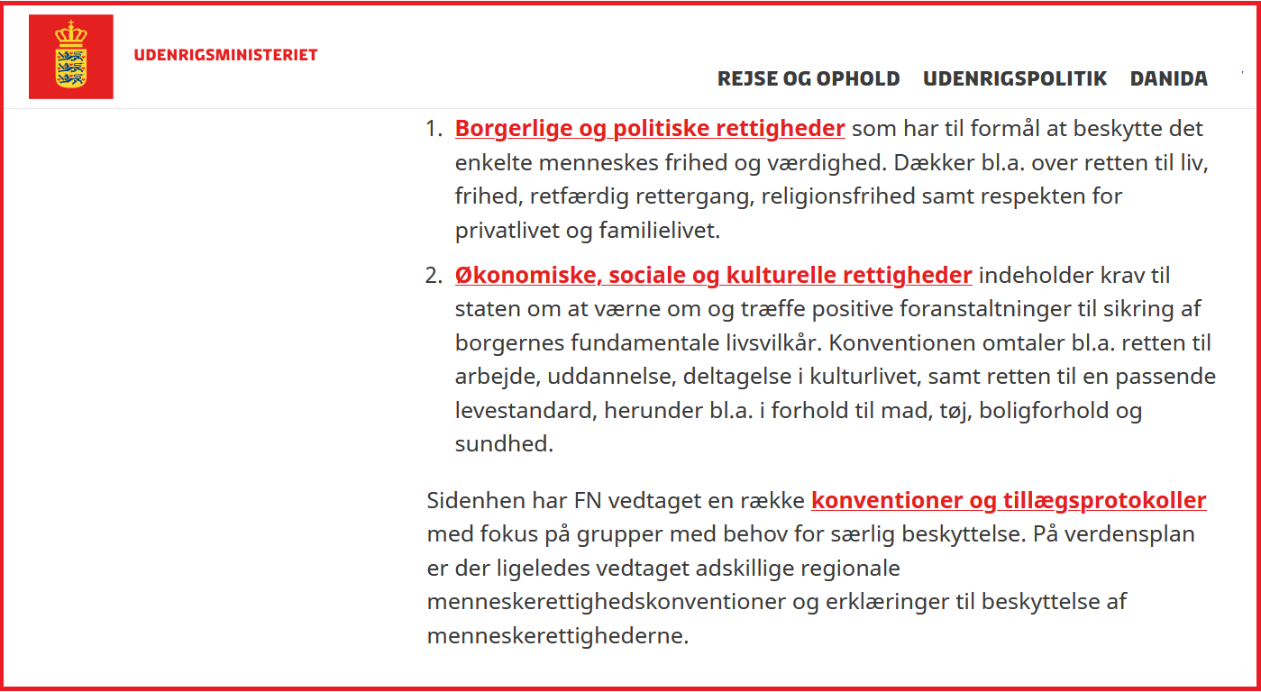 Danmark har for længst tiltrådt menneskerettighederne, der indeholder krav til staten om at værne om og træffe positive foranstaltninger til sikring af borgernes fundamentale livsvilkår. Konventionen omtaler bl.a. retten til arbejde, uddannelse, deltagelse i kulturlivet, samt retten til en passende levestandard, herunder bl.a. i forhold til mad, tøj, boligforhold og sundhed. En topplacering som verdens værste kræftland tyder stærkt på manglende foranstaltninger, hvad angår statens indsats for borgernes ret til sundhed.
