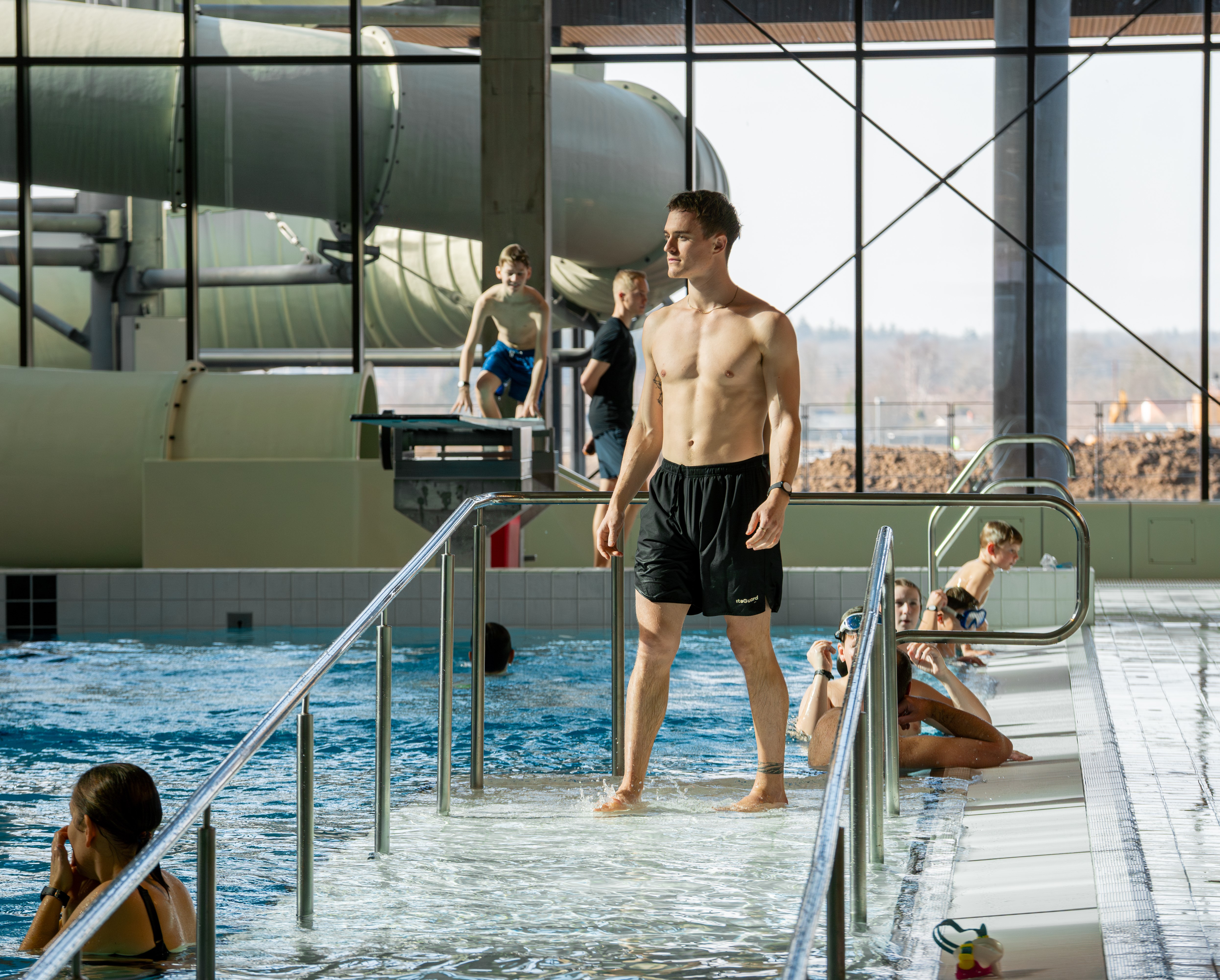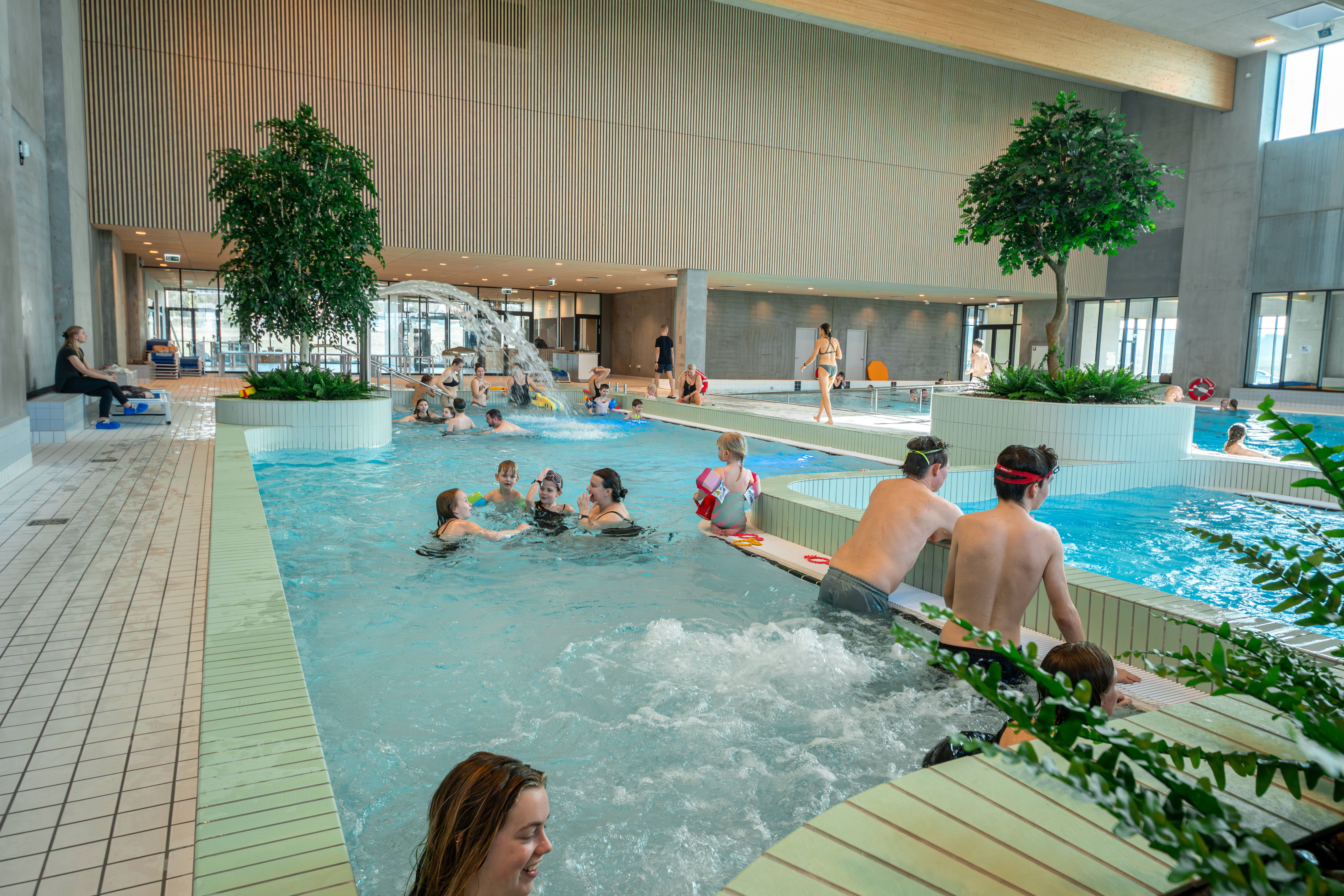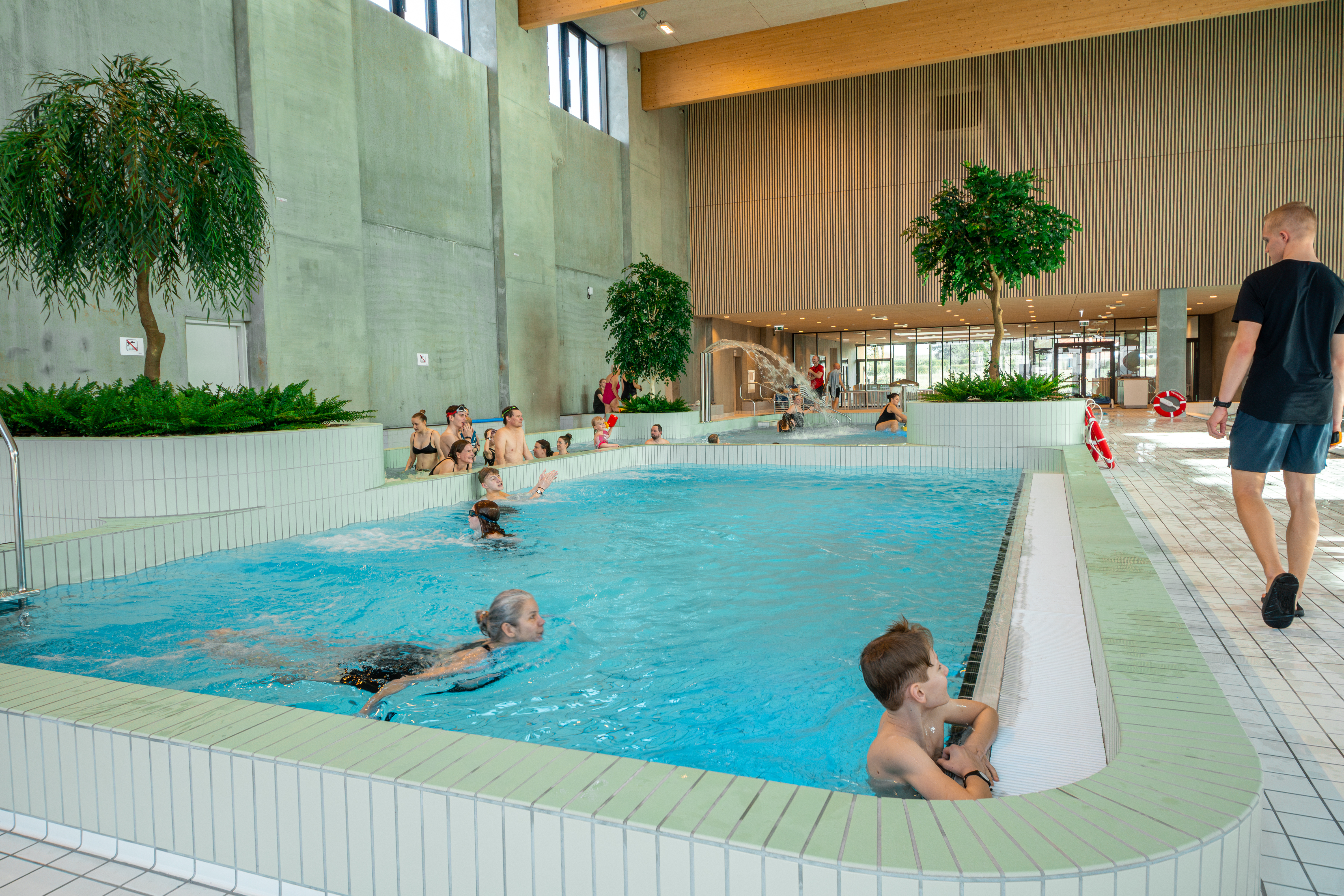 Der er noget at glæde sig til. Svømmehallen kan bryste sig af: 1.500 kvadratmeter vandoverflade fordelt i syv flotte bassiner, en 80 meter lang vandrutsjebane med lys og lyd, 1- og 3-meter vippe, 5-meter udspringsplatform, sauna, dampsauna, infrarød sauna og topmoderne faciliteter inklusiv café.