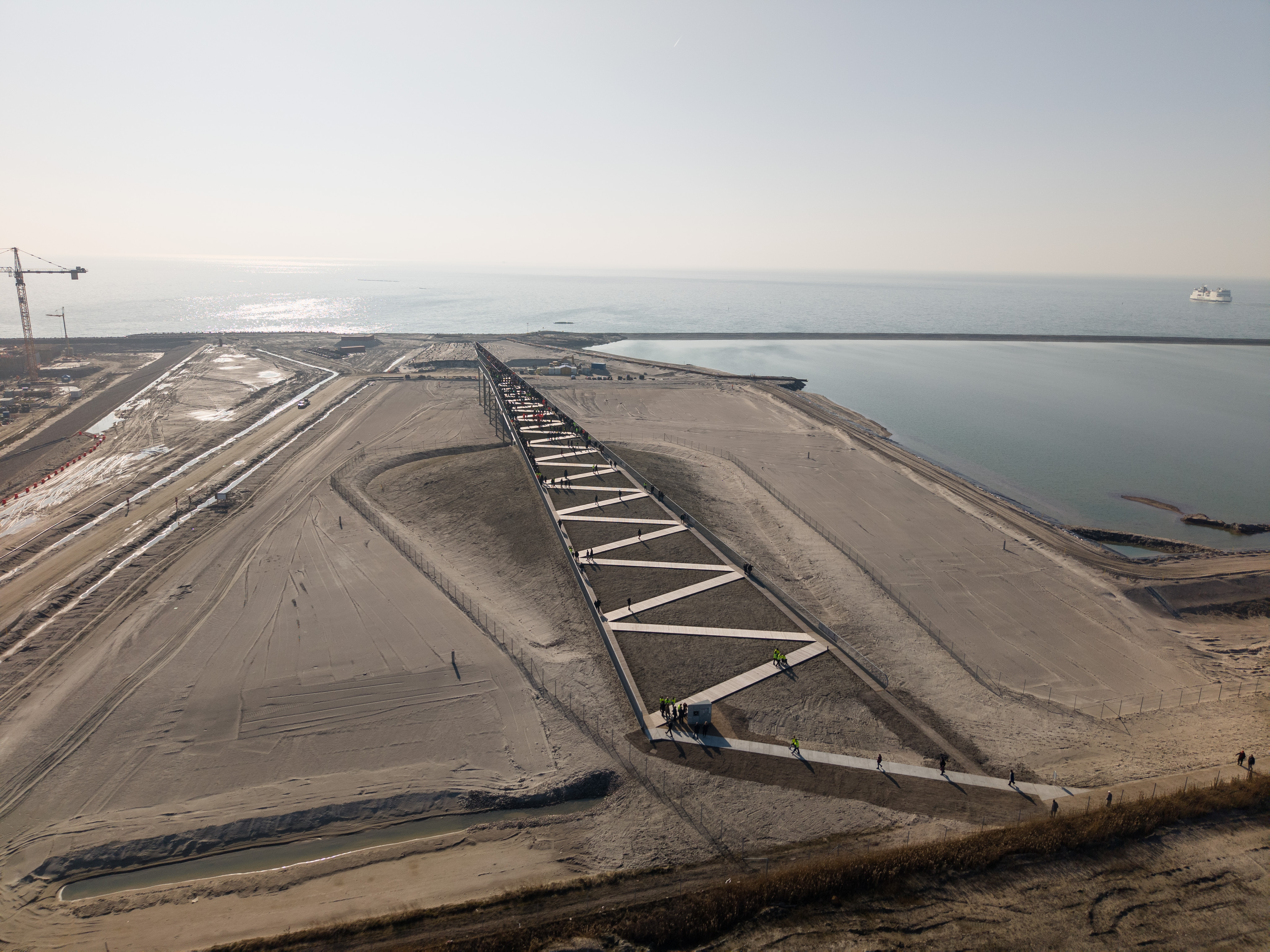 Fra toppen af Pilen kan man følge med i byggeriet af verdens længste sænketunnel.