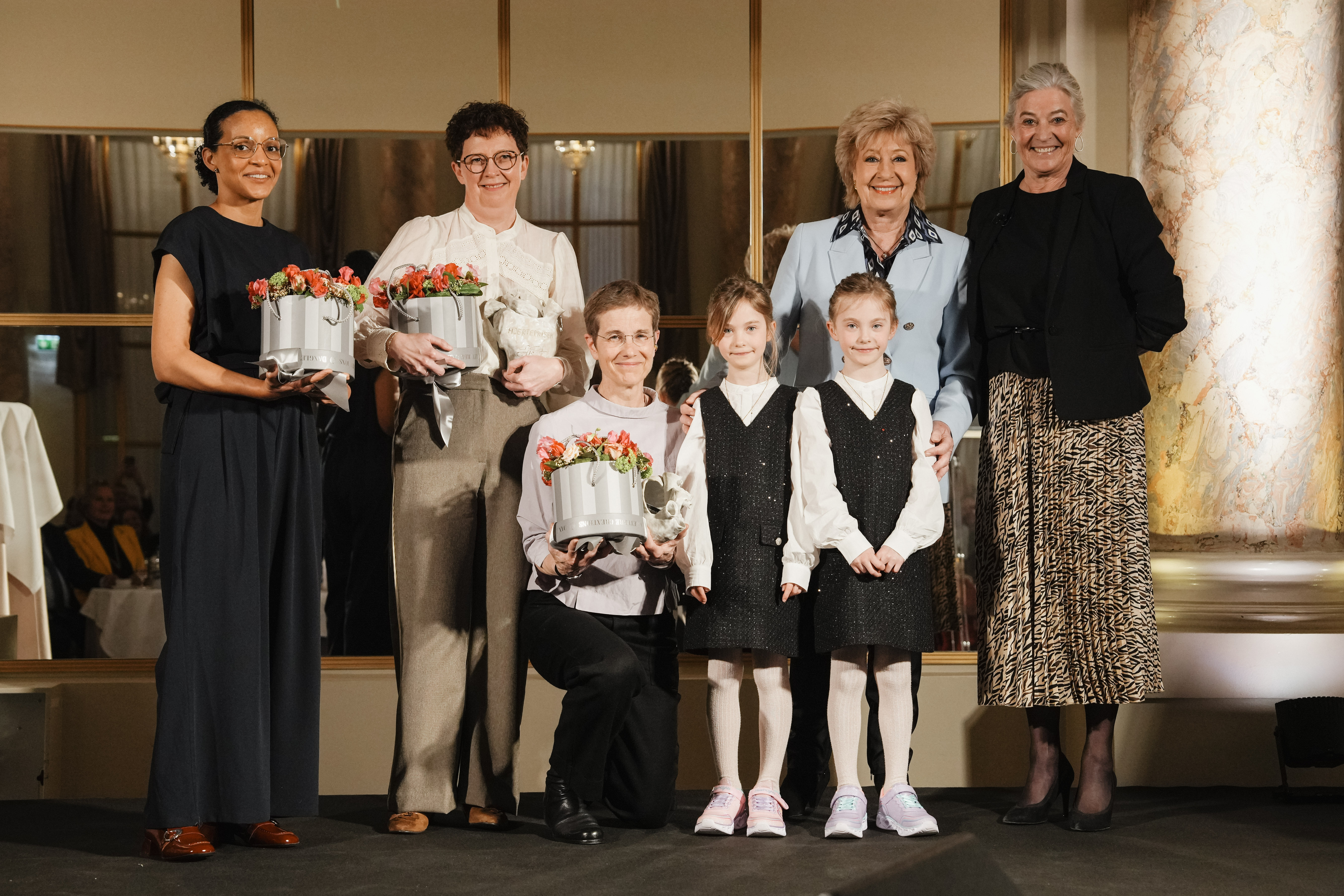 Birthe Kjær fik hjælp på scenen til at uddele pris og blomster af tvillingerne Alma og Ellen på 8 år fra Odense. Begge er født med Steno-Fallots tetralogi - en kompliceret hjertemisdannelse, der omfatter fire hjertefejl. De to tvillingepiger agerede repræsentanter for en lang række af landets hjertebørn, som hver dag får en uvurderlig behandling på alle landets børnehjerteambulatorier.