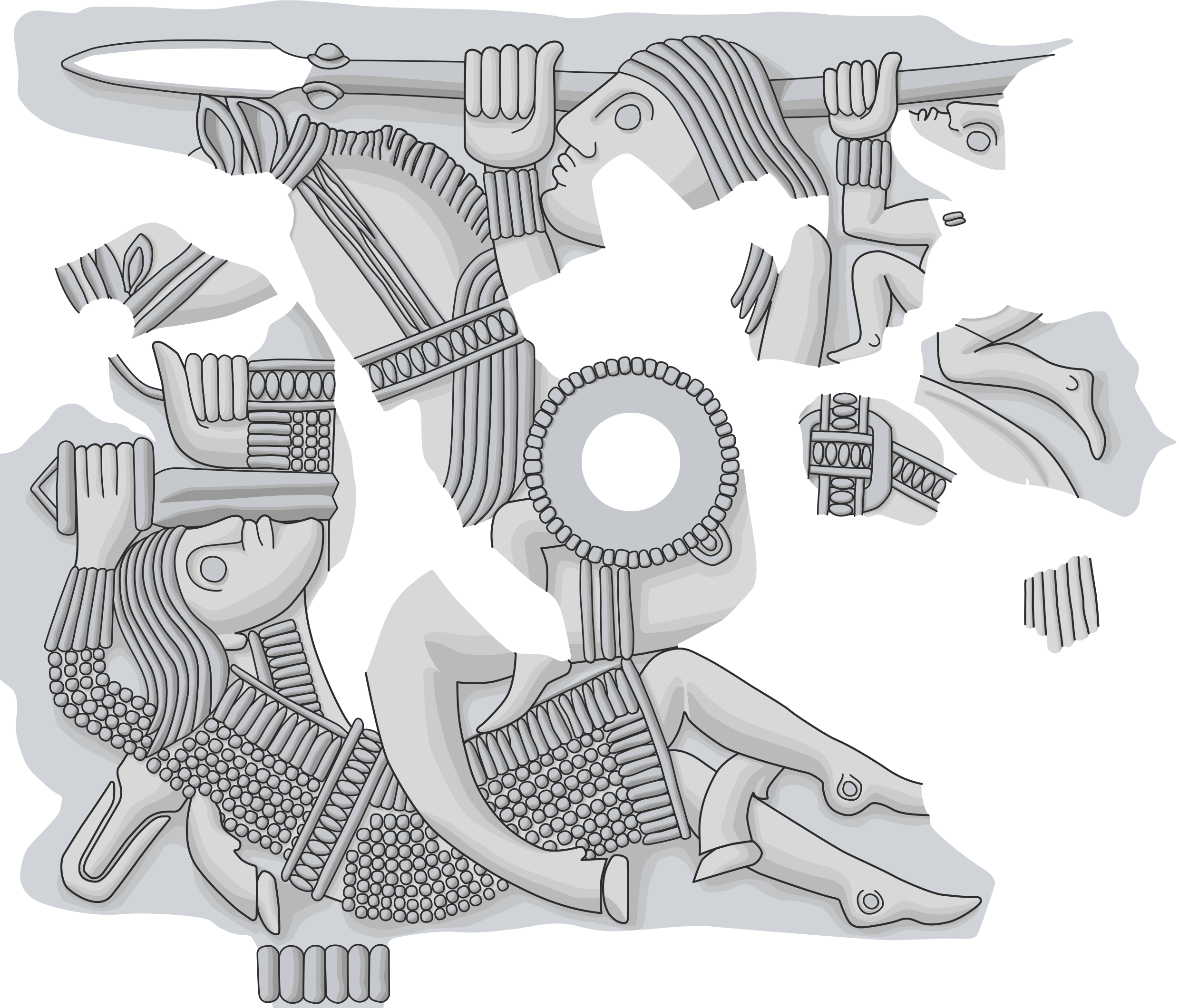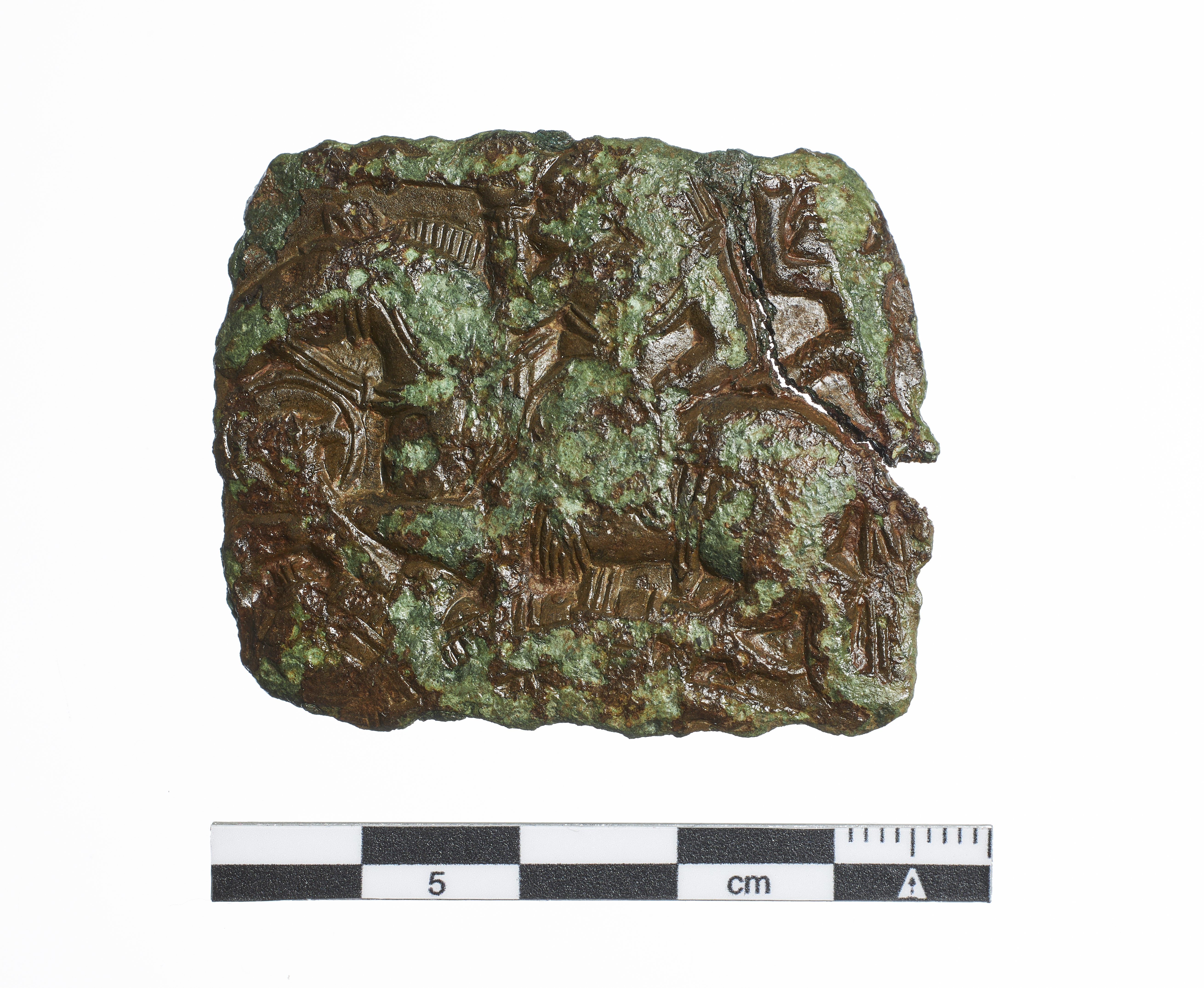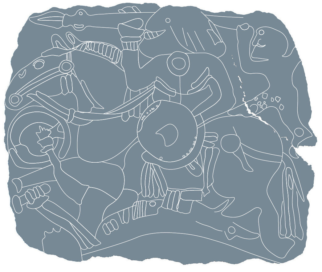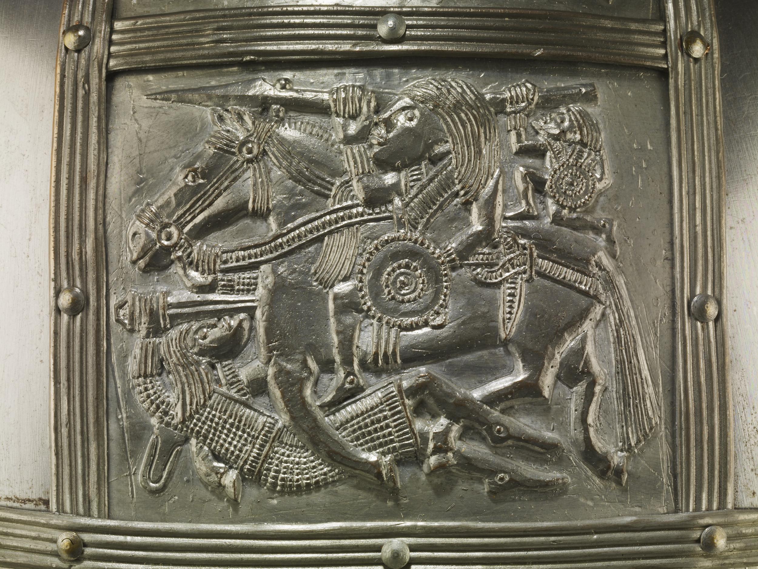 Selvom hjelmen var fragmenteret i hundredvis af stykker, lykkedes det fagfolk at samle den, og herunder også et af motiverne på den, som viser en ridende kriger og en mand liggende under hesten.