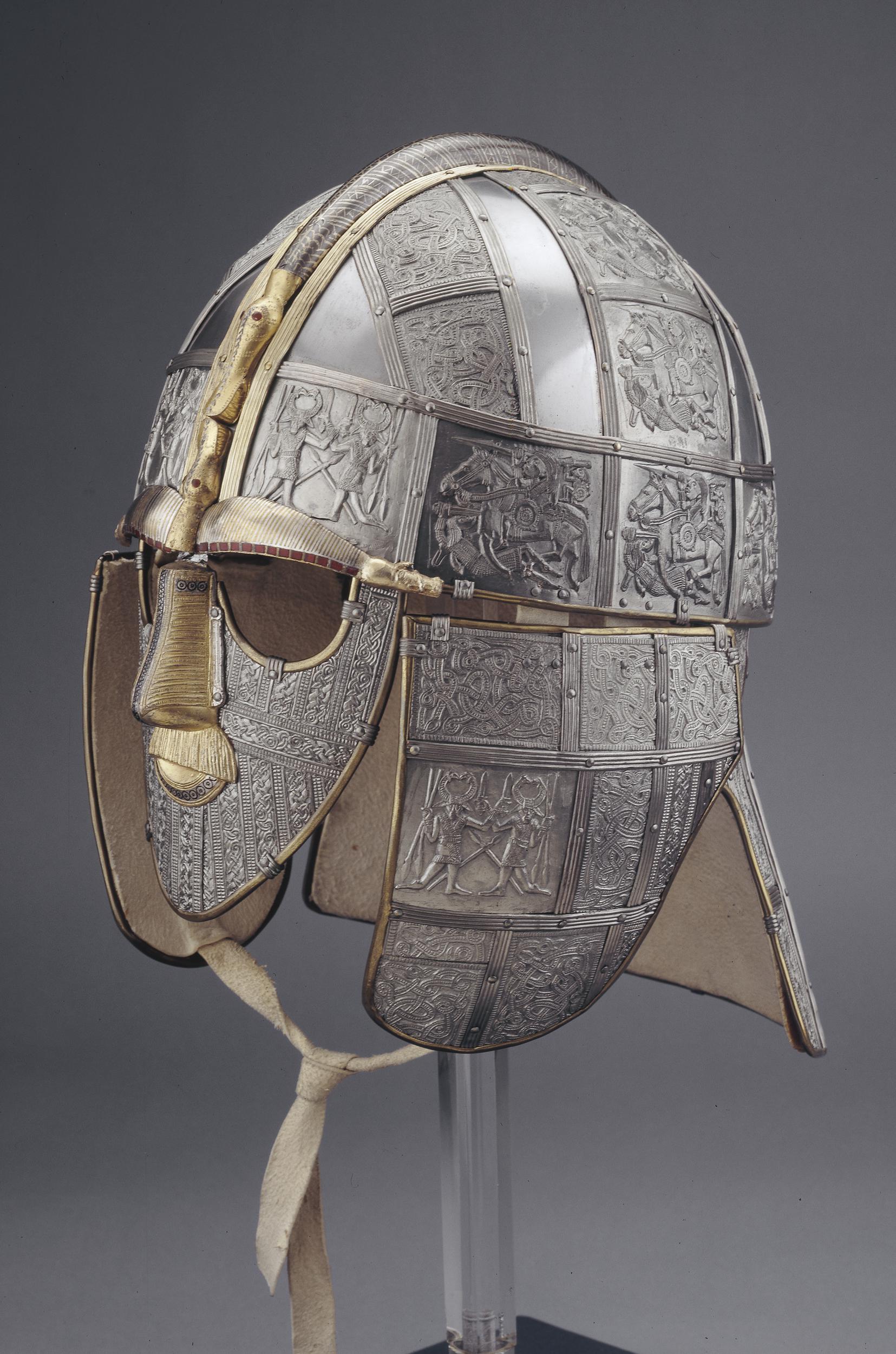 The iconic Sutton Hoo helmet is one of Great Britain’s most iconic finds, often referred to as the ‘British Tutankhamen’. It was previously believed to come from Uppland in Sweden, where helmets decorated with mounted warriors like one of the motifs on the helmet have been found.