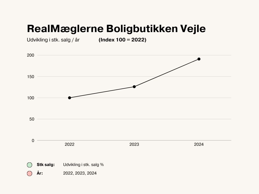 Salget var gennem hele 2024 sammenlagt 51,6 procent højere end i 2023 hos RealMæglerne Boligbutikken Vejle ApS.