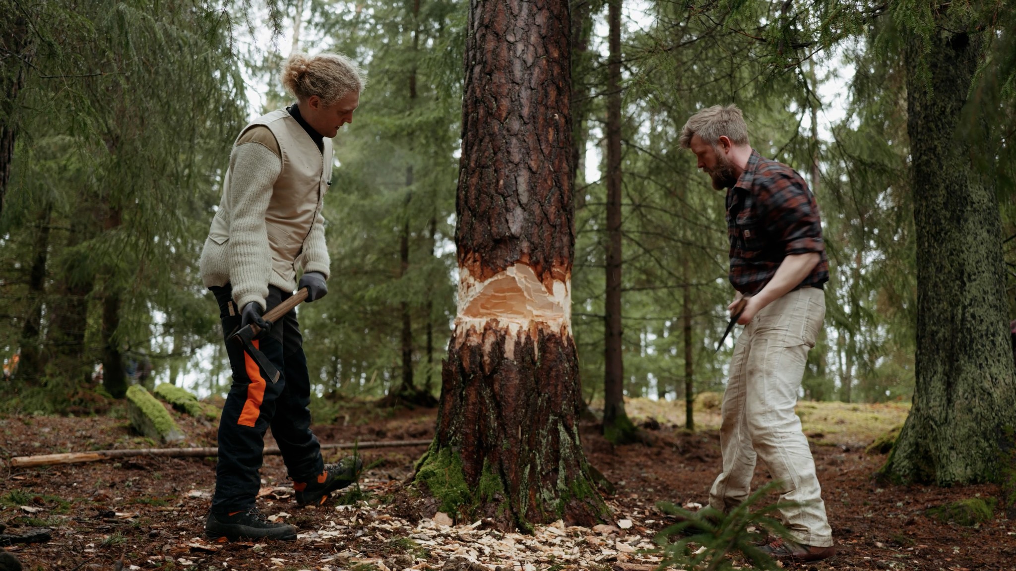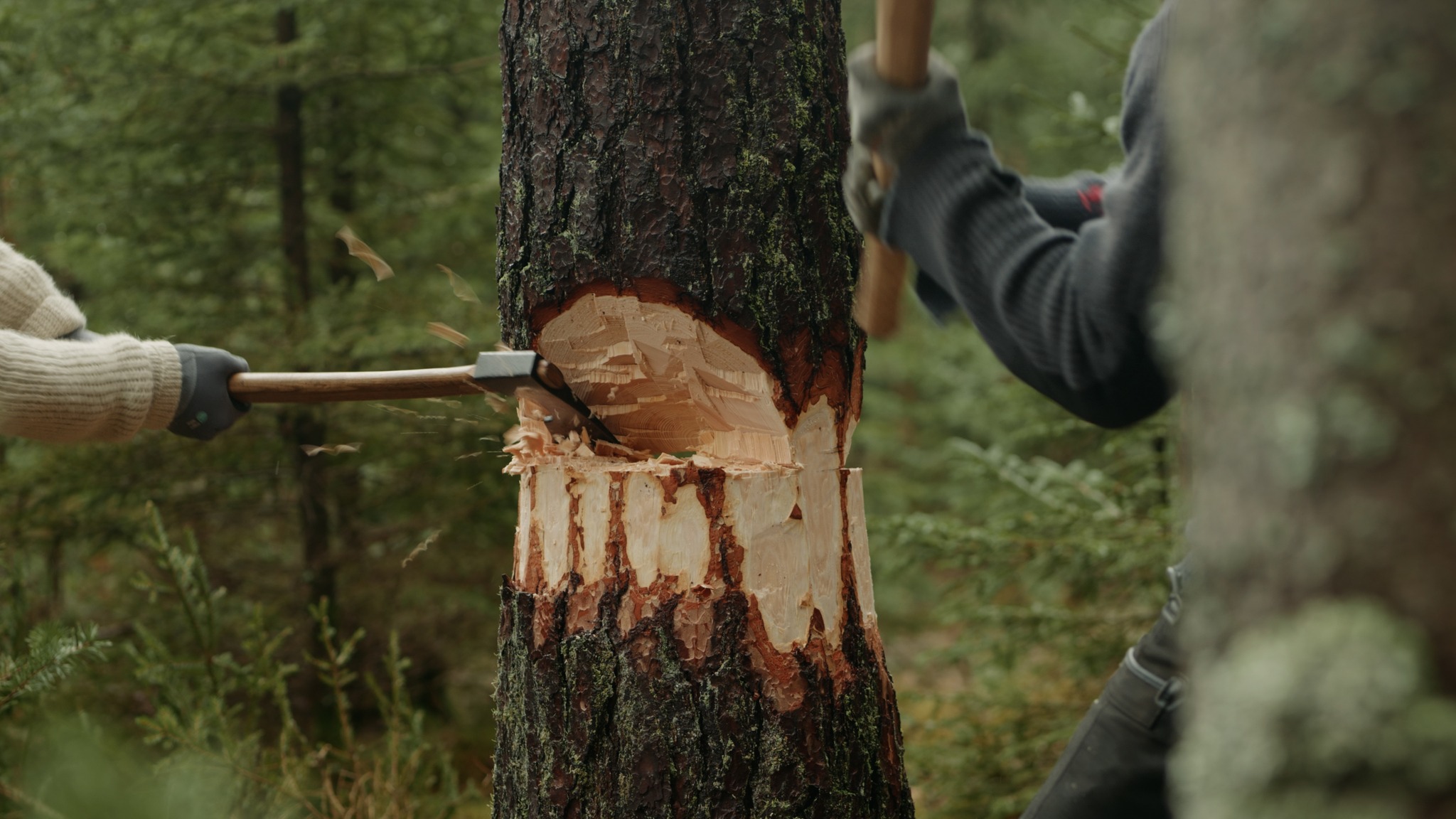 Bevæger du dig den kommende tid ned forbi marken foran herregården Fjellerup på Frilandsmuseet, vil træspånerne flyve dig om ørene. Økser vil blive svunget, når nogle af de bedste håndværkere fra hele verden og fra Frilandsmuseet med speciale i restaurering og gamle byggemetoder demonstrerer udvalgte klassiske teknikker fra den 23. april til 27. april. Som at hugge med økse, snøre op og omdanne kæmpemæssige træstammer til træ, du kan bygge med. Fra den 27. april vil Frilandsmuseets restaureringshåndværkere og håndværkere fra Hustømreforeningen undervise fremtidens håndværkere i selvsamme teknikker og metoder. Metoder, der både danner grundlaget for bygninger som Børsen og Notre Dame og husene på Frilandsmuseet, og giver dig et unikt historisk indblik i, hvordan man arbejdede - og knoklede - med træet tilbage i tiden. Men det er også metoder, som, hvis de bliver mere udbredt, kan trække byggeindustrien i dag i en mere bæredygtig retning.