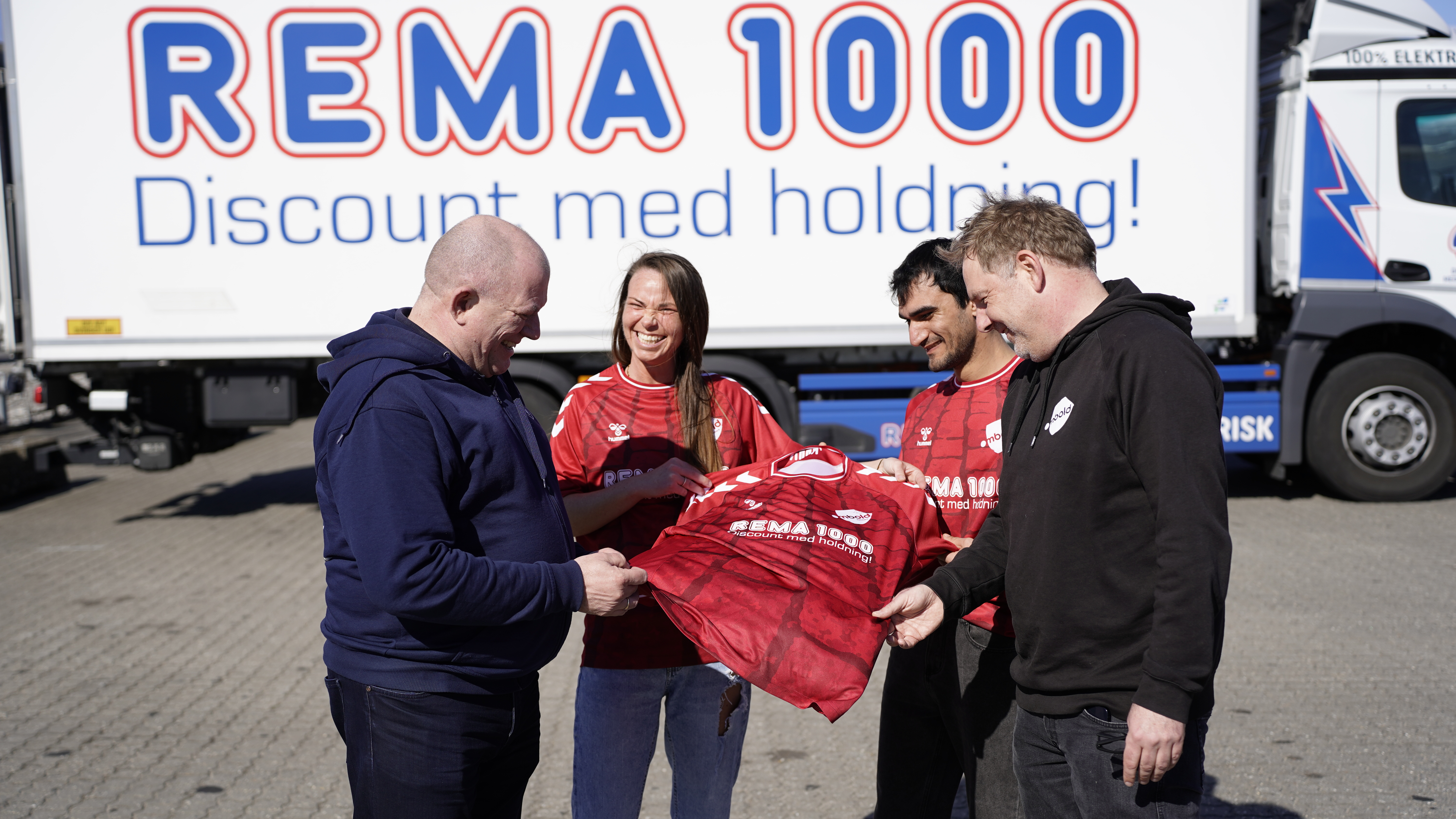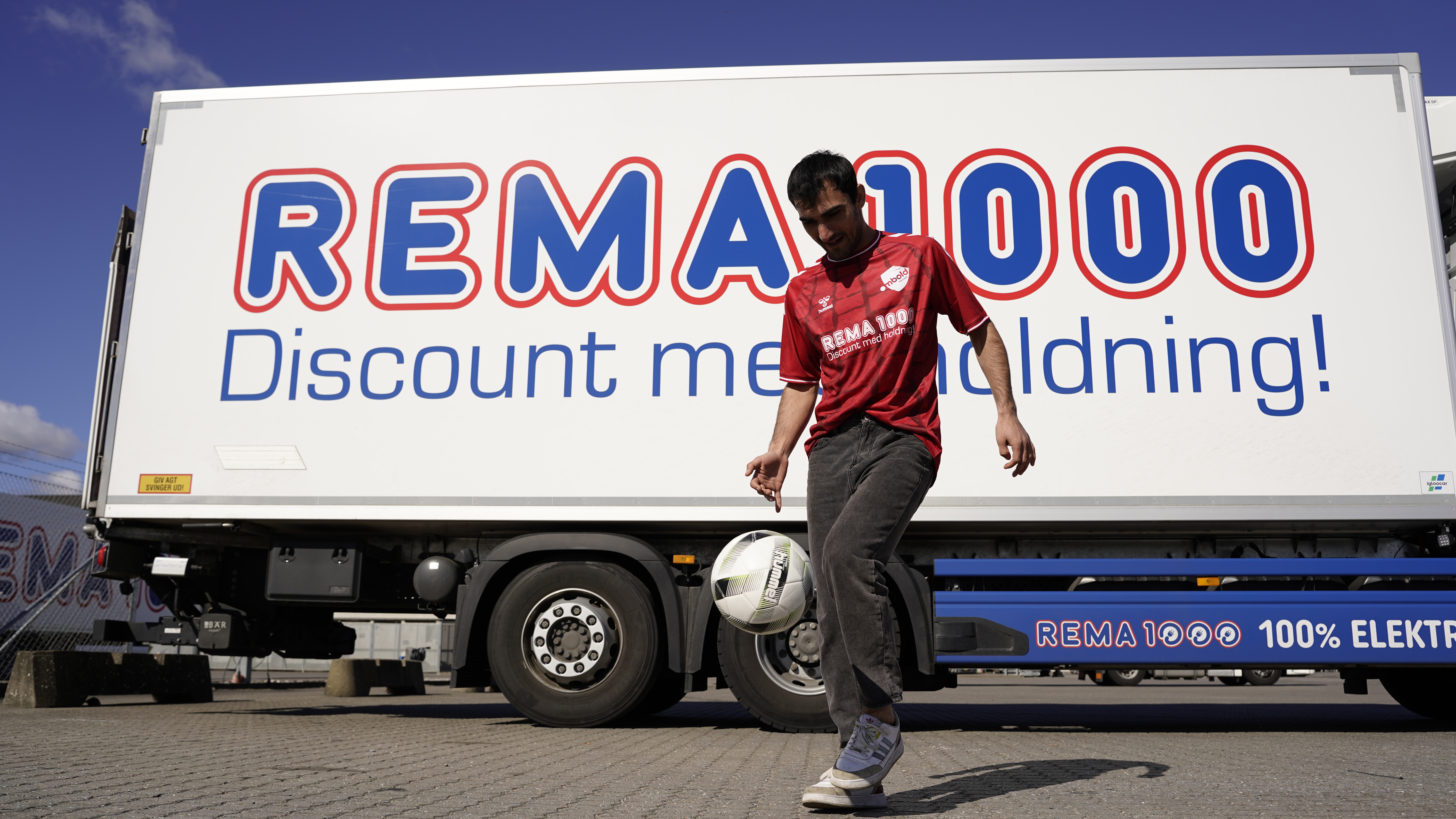 Dagligvarekæden REMA 1000s velkendte logo er for mange ensbetydende med dagligvarer til fornuftige priser, men nu kan danskerne også begynde at sætte lighedstegn mellem REMA 1000 og det danske hjemløselandshold.