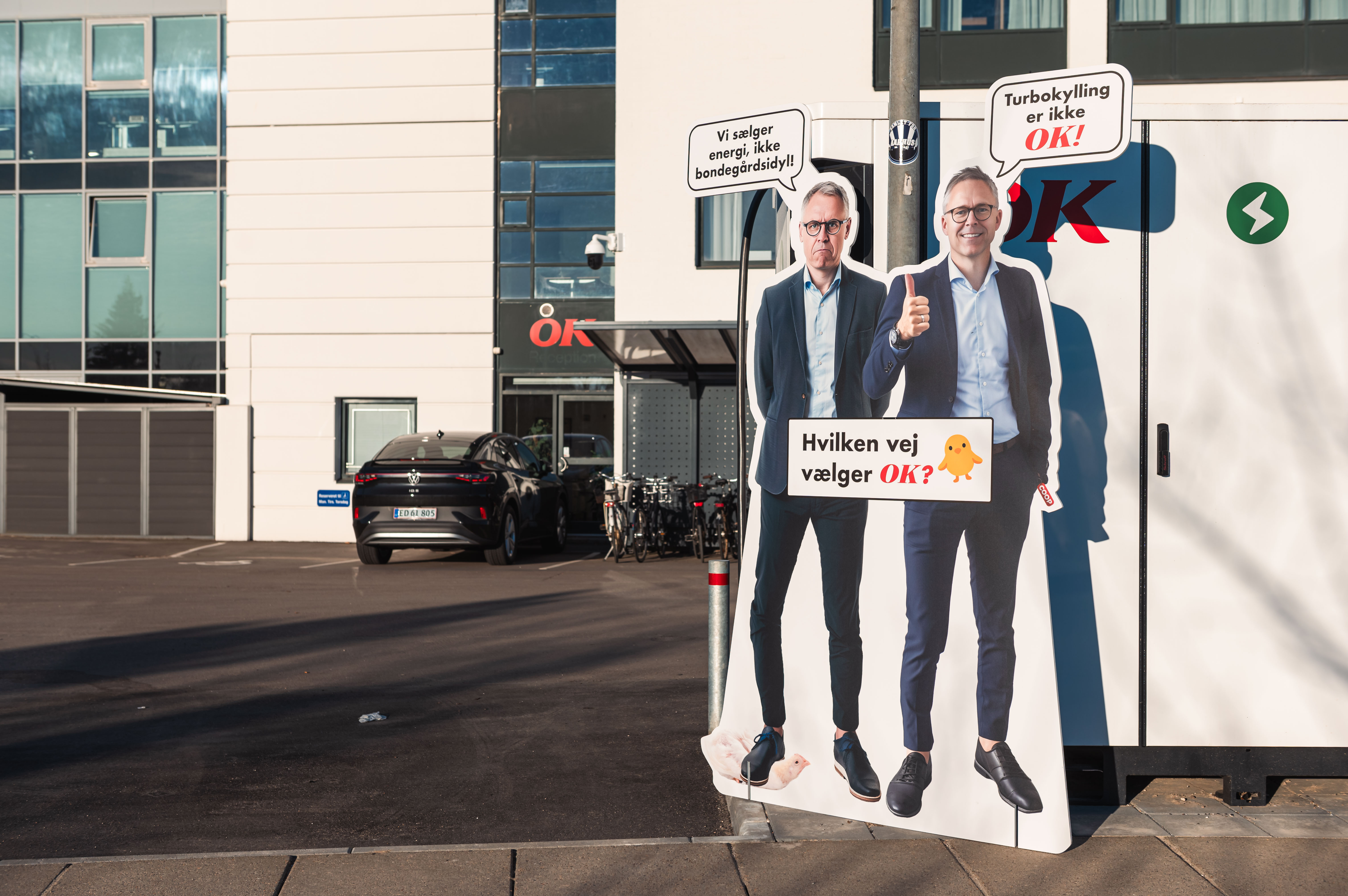 Som led i kampagnen mod turbokyllinger retter Anima nu en pegefinger mod OK. ”OK har købt et dyrevelfærdsproblem,” lyder det, med henvisning til sidste års opkøb af Coop. Med kyllingekager, ironiske papfigurer af CEO Michael Løve, store avisannoncer og et helt særligt kunstværk vil Anima nu overbevise OK’s medarbejdere på Åhave Parkvej om, at det er på tide at tage ansvar.