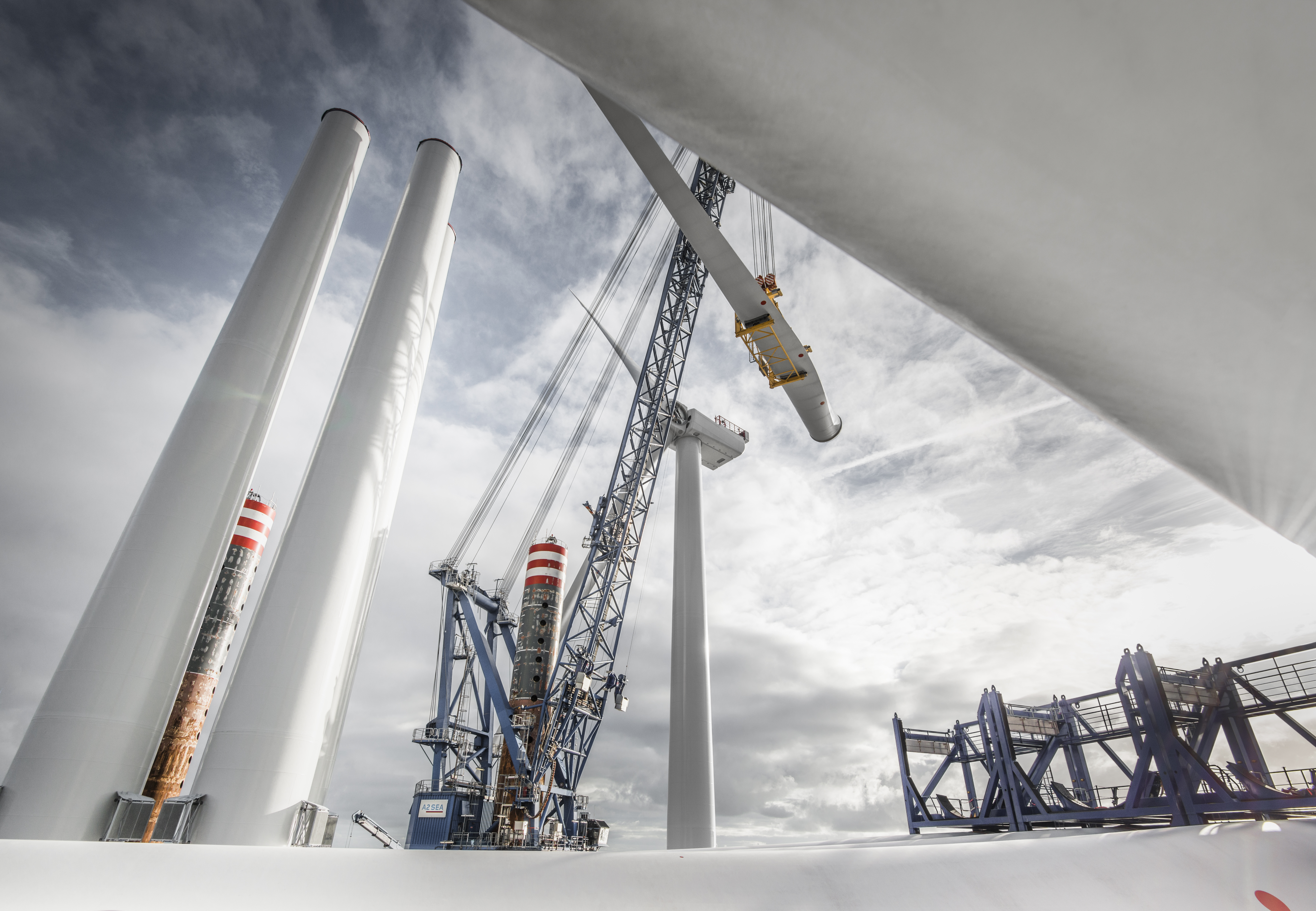 Et moderne vindmølleinstallationsfartøj, der transporterer fem eller seks møller ad gangen, kræver flere tusinde tons stål på dækket i sefastening for at fiksere naceller, tårne og vinger under transport fra havn til installationsstedet.