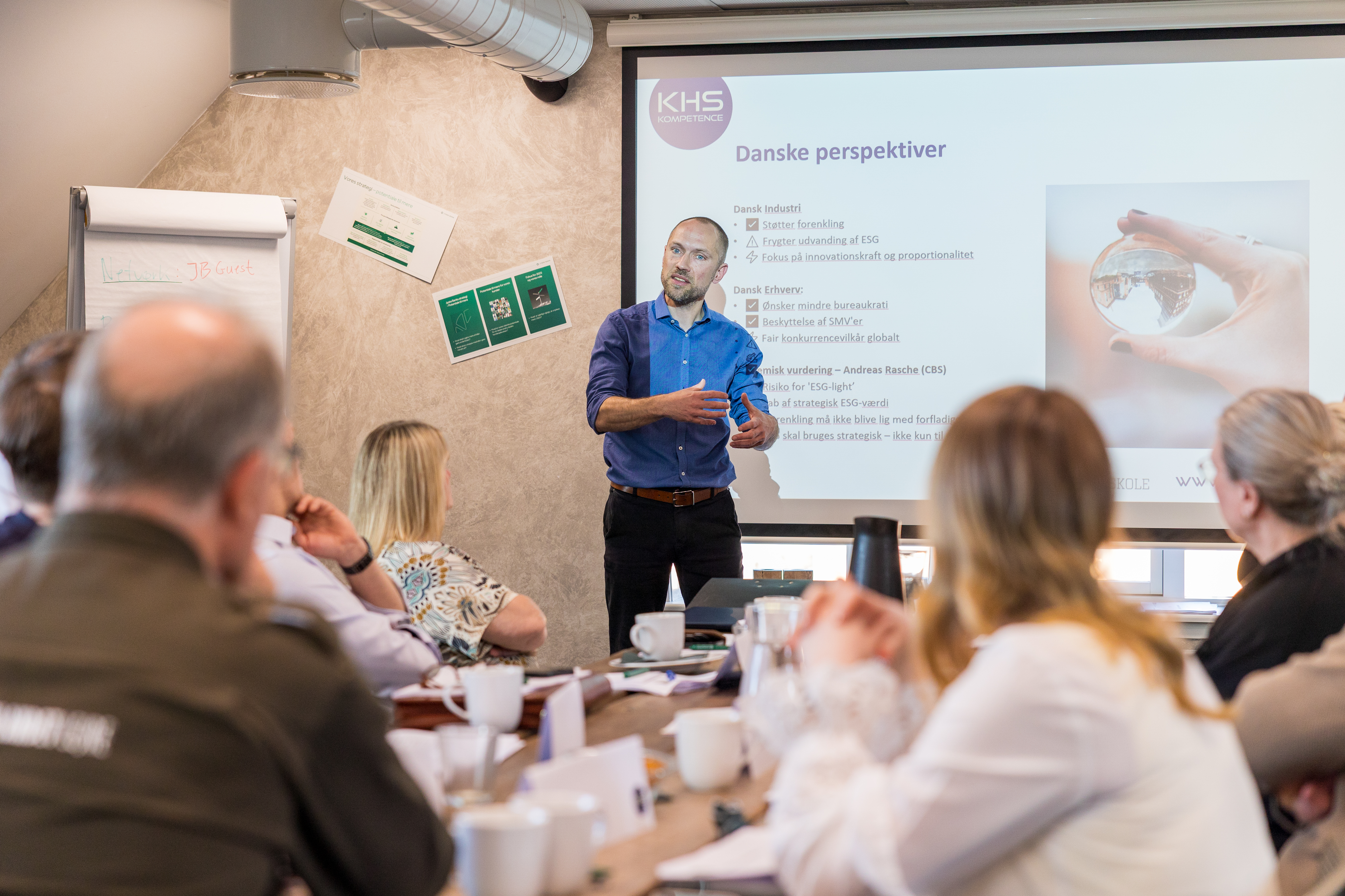 "Selvom dokumentationskravene i første omgang har haft størst fokus på store virksomheder, har de også fået afgørende betydning for SMV'er. Når en stor virksomhed skal dokumentere, hvad der foregår i dens værdikæde, har den nemlig også brug for data fra sine leverandører", forklarer virksomhedskonsulent Jette Mølholm fra KHS Kompetence, der er tovholder på kursusforløbet. SMV'er, der ikke kan fremvise CO2-regnskab og ESG-rapport, risikerer at komme i klemme over for både eksisterende og nye kunder: "Man kan blive afskåret fra overhovedet at måtte afgive tilbud på en udliciteret opgave, hvis man ikke kan fremvise en ESG-rapport."