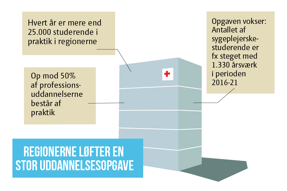 Regionerne spiller en stor og en vigtig rolle i uddannelsen af nye medarbejdere til sundhedsvæsnet. Det er imidlertid ikke en rolle, som de bliver kompenseret for.