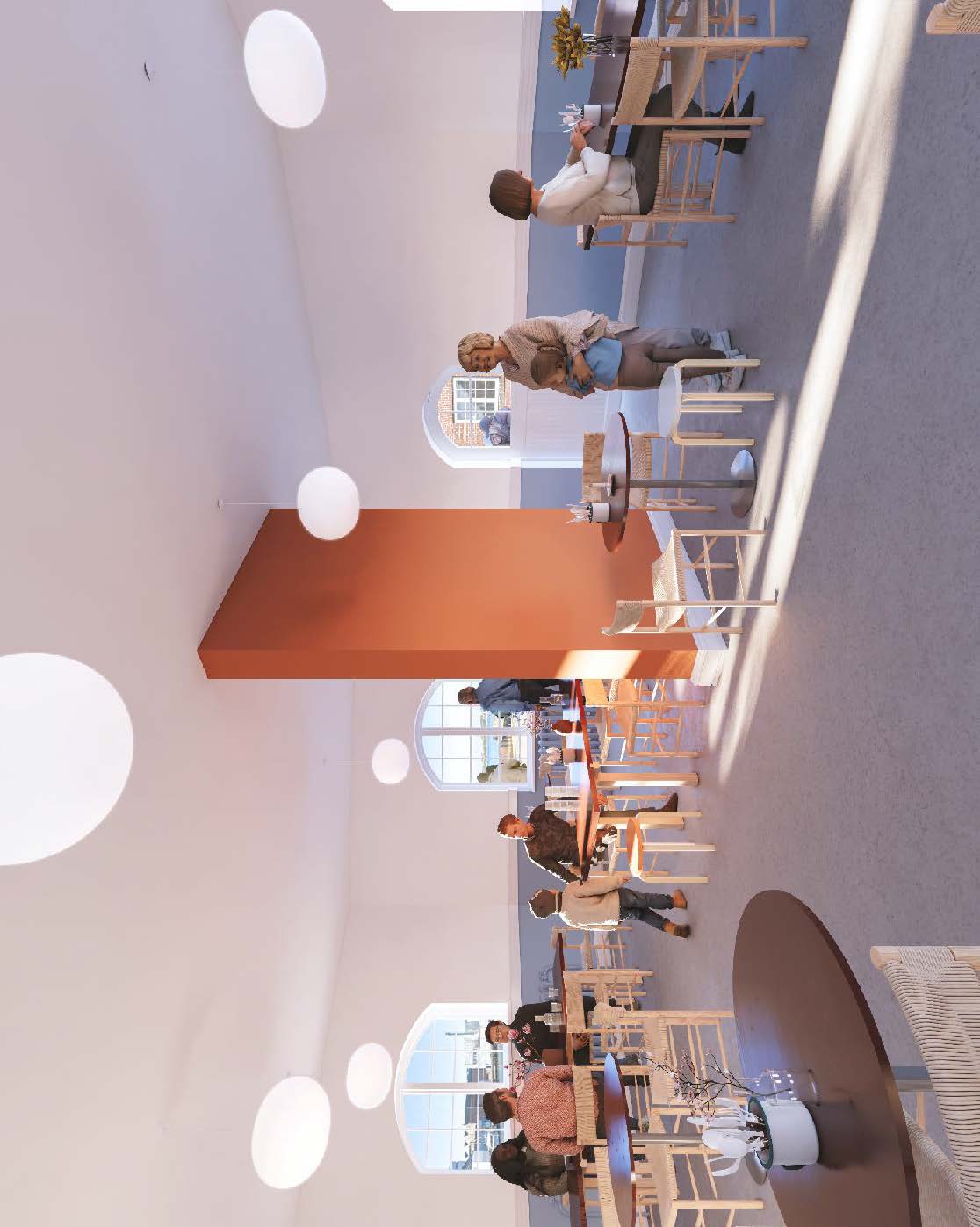 Visualisering af café i Havnebygningen. ERIK BRANDT DAM arkitekter ApS