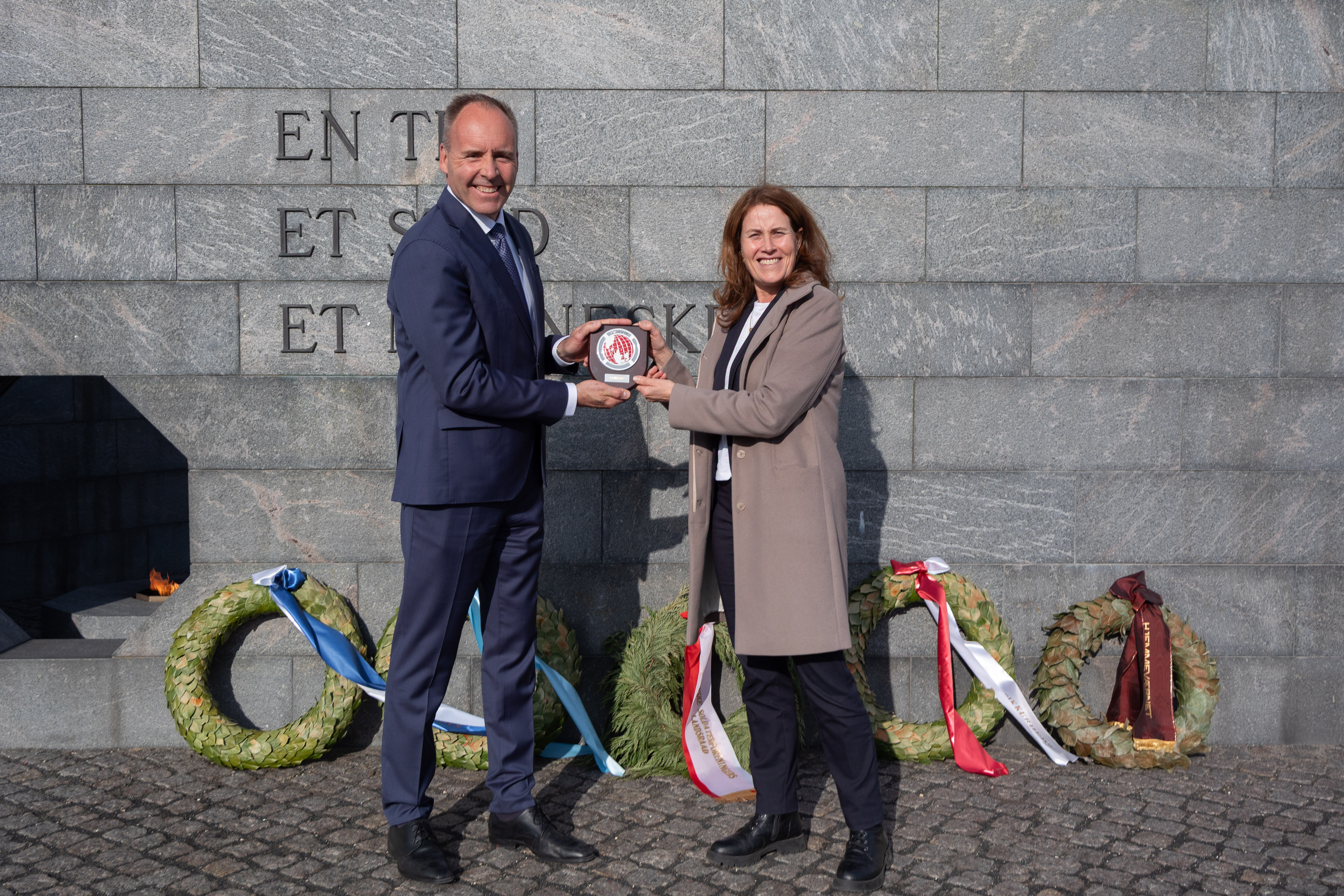 I går aftes, torsdag, modtog Henrik Winther, direktør for COWI i Danmark, InterForces skjold som symbol på aftalen.