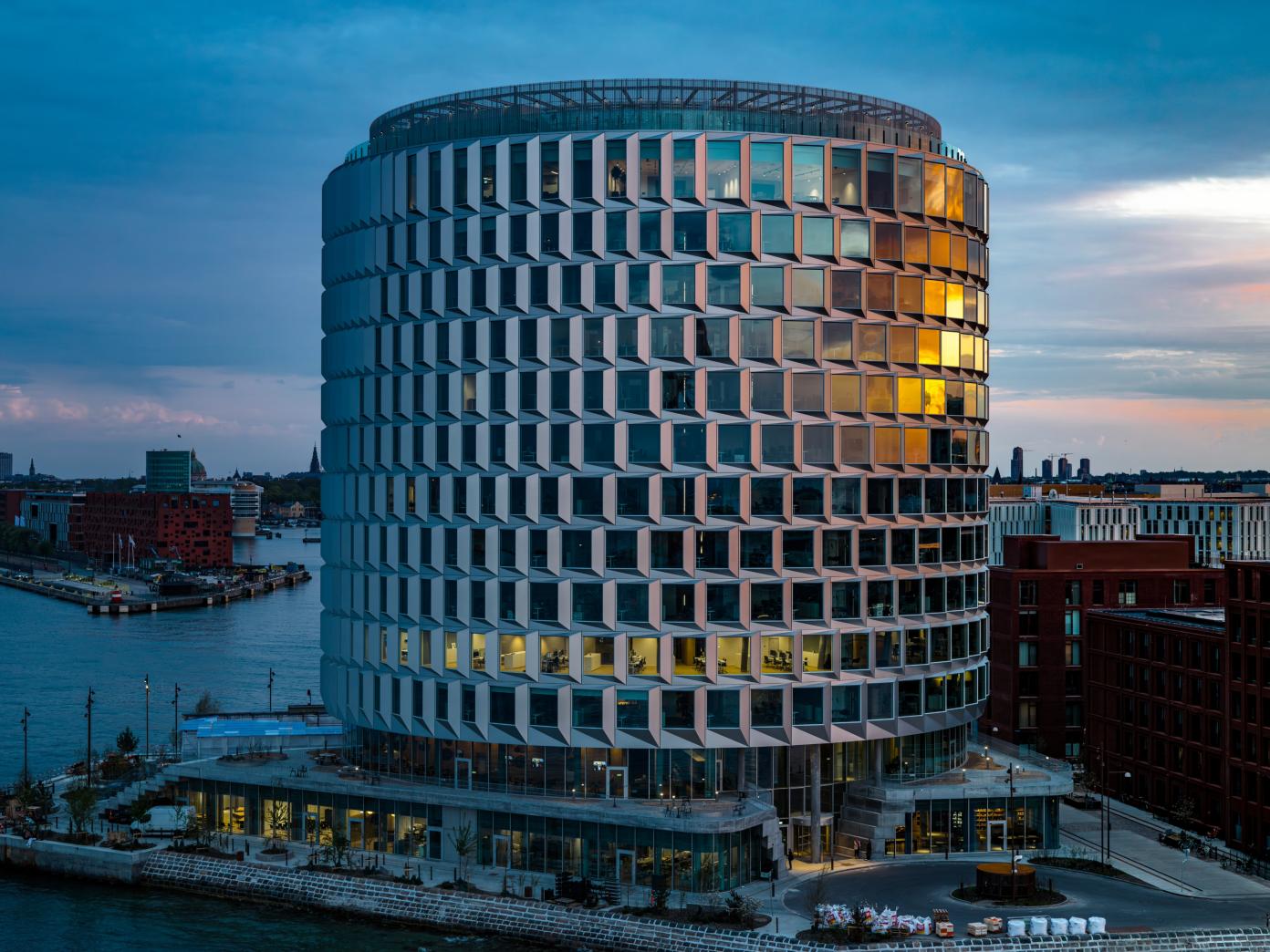 Den 60 meter høje cirkulære kontorbygning er bygget på spidsen af Nordø ud mod det store havnebassin, og fungerer som pejlemærke for enden af Århusgadekvarteret. I midten af bygningen findes ’Vinterhaven’, en 14-etagers høj atriumgård med træer og planter, der er åben for offentligheden.