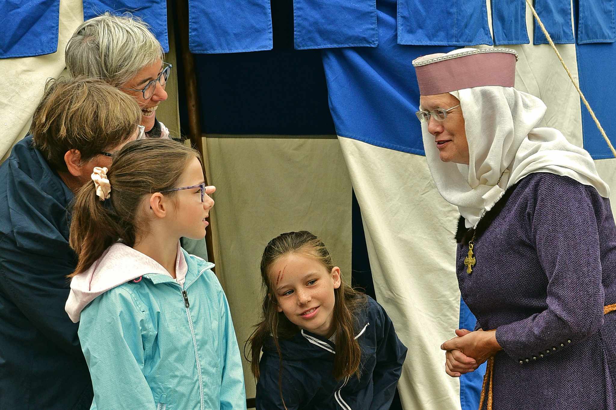 Også følesansen aktiveres, når man kan røre ved ægte middelaldergenstande som keramik, nøgler og munkesten, der er fundet i og omkring Roskilde. Med blæk og gåsefjer kan man prøve kræfter med middelalderens skriftsprog hos skrivernonnen Lise, Mikkel Langbue fortæller historier for hele familien, og musikgruppen Almune står for musikalske indslag. Alle sejl er sat for at give en stærk middelalderoplevelse.