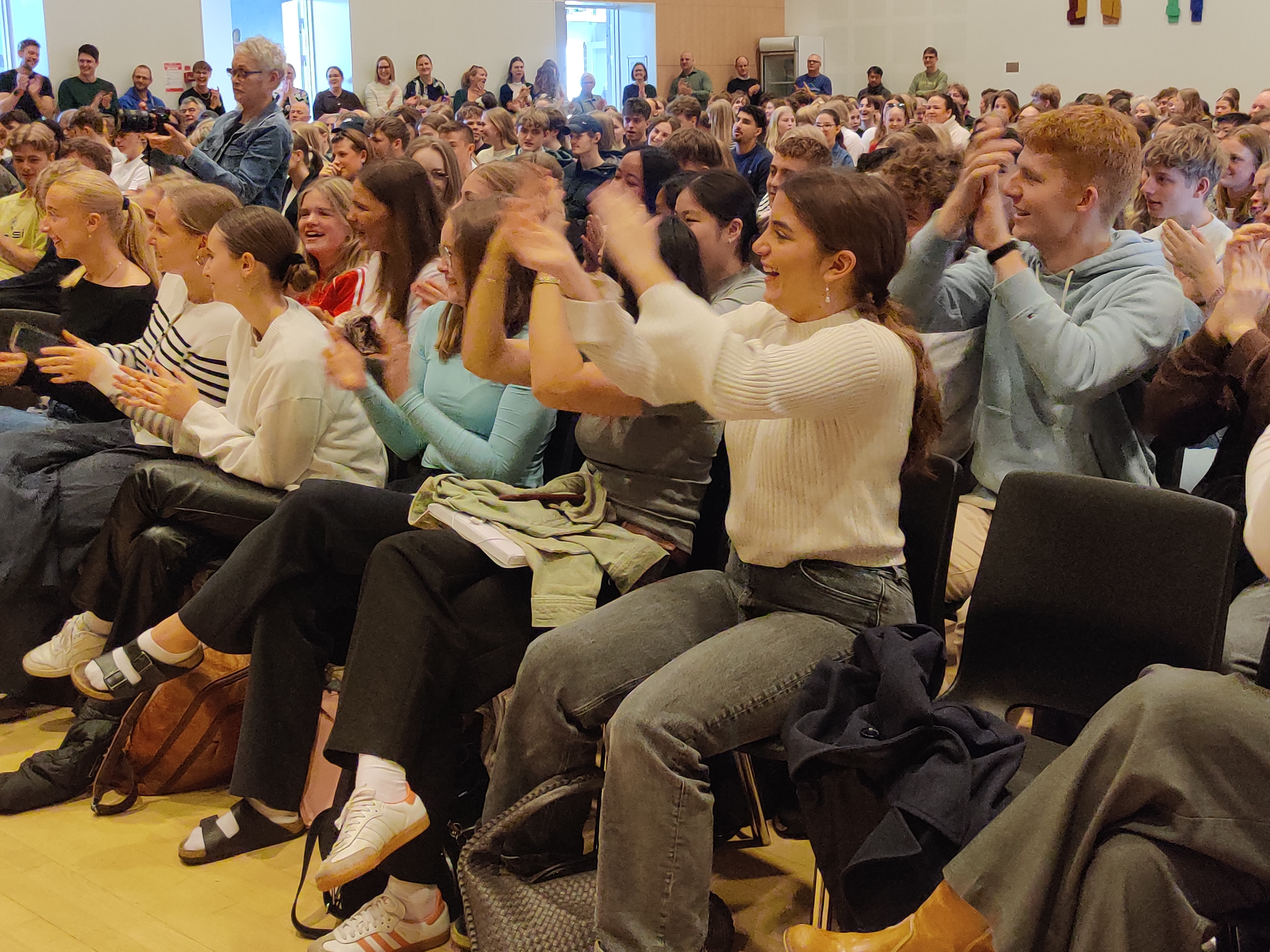 Vedlagte fotos kan frit anvendes af pressen. Fotos er fra overrækkelse af Fælles-Tour hovedpræmien på Hjørring Gymnasium fredag den 25. april 2025. Foto: Region Nordjylland.