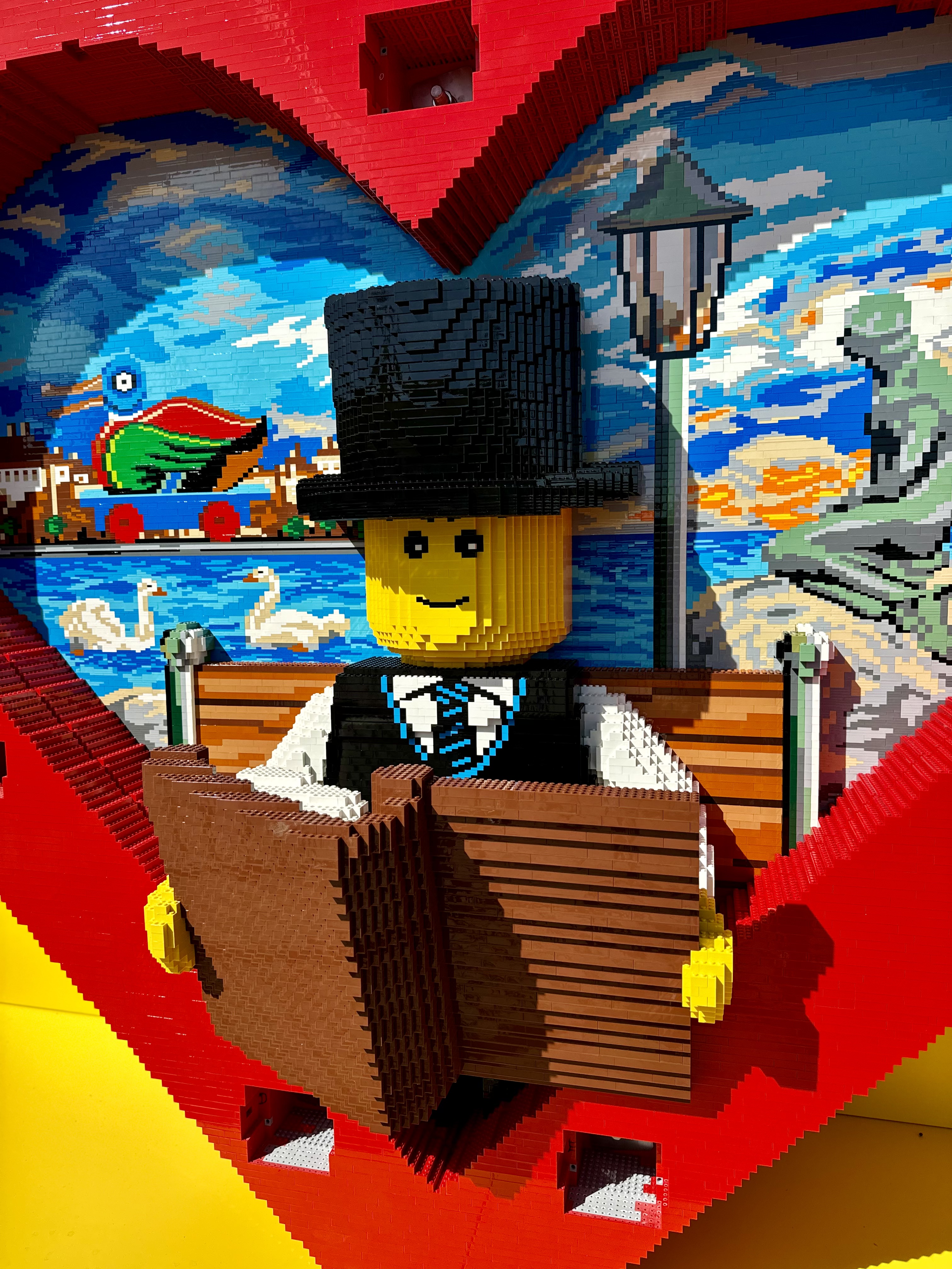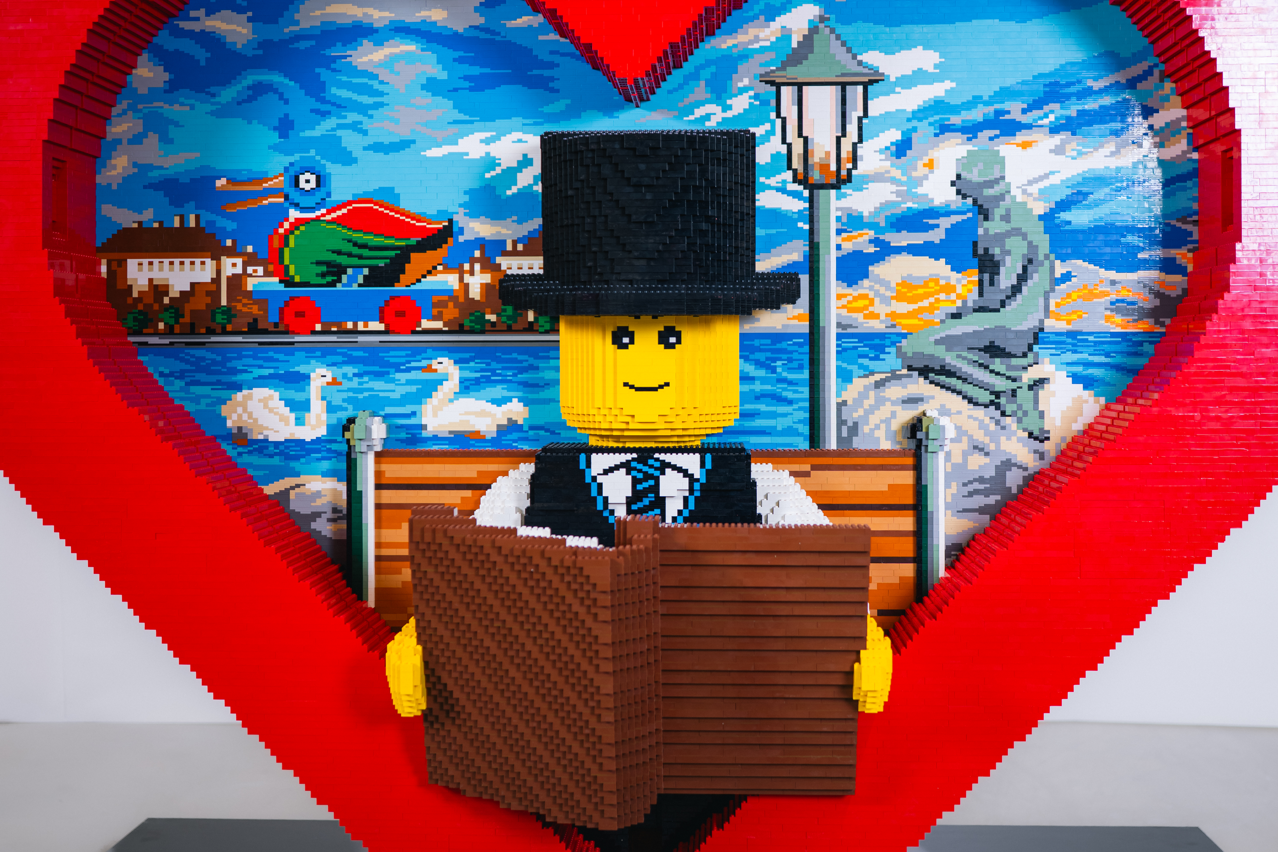 Den imponerende model står som et velkomstikon tæt ved parkens indgang under hele festivalperioden og danner budskabet ”I <3 PLAY”. Modellen er én af i alt syv LEGO hjerter, som er blevet bygget til LEGOLAND parker verden over for at markere starten på den første globale LEGO Festival. Hvert hjerte er særligt designet til sin destination, og i LEGOLAND Billund er det blandt andet Den Lille Havfrue, den ikoniske LEGO and og selveste H.C. Andersen, der kan ses på modellen.