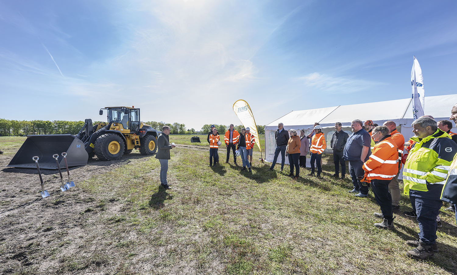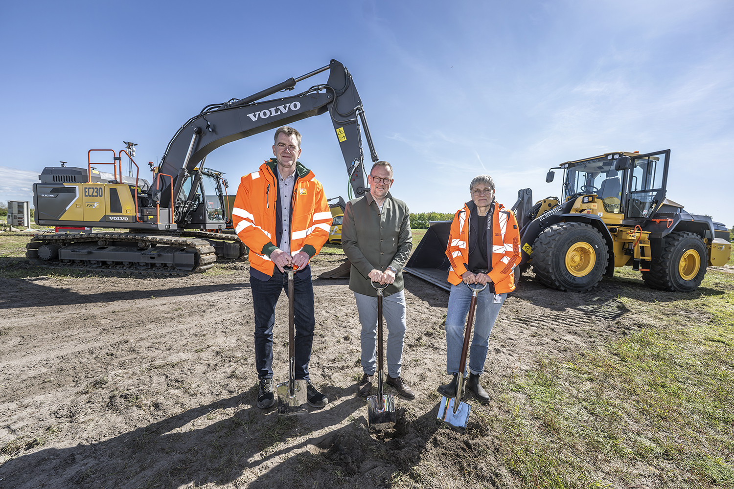 Esbjerg Kommune og DIN Forsyning tog den 5. maj første spadestik til anden etape af byggemodningen i Breinholtparken i Hjerting ved Esbjerg. Projektet markerer samtidig en ny milepæl: For første gang anvendes emissionsfrie maskiner i stort omfang på en byggemodning i Esbjerg Kommune.