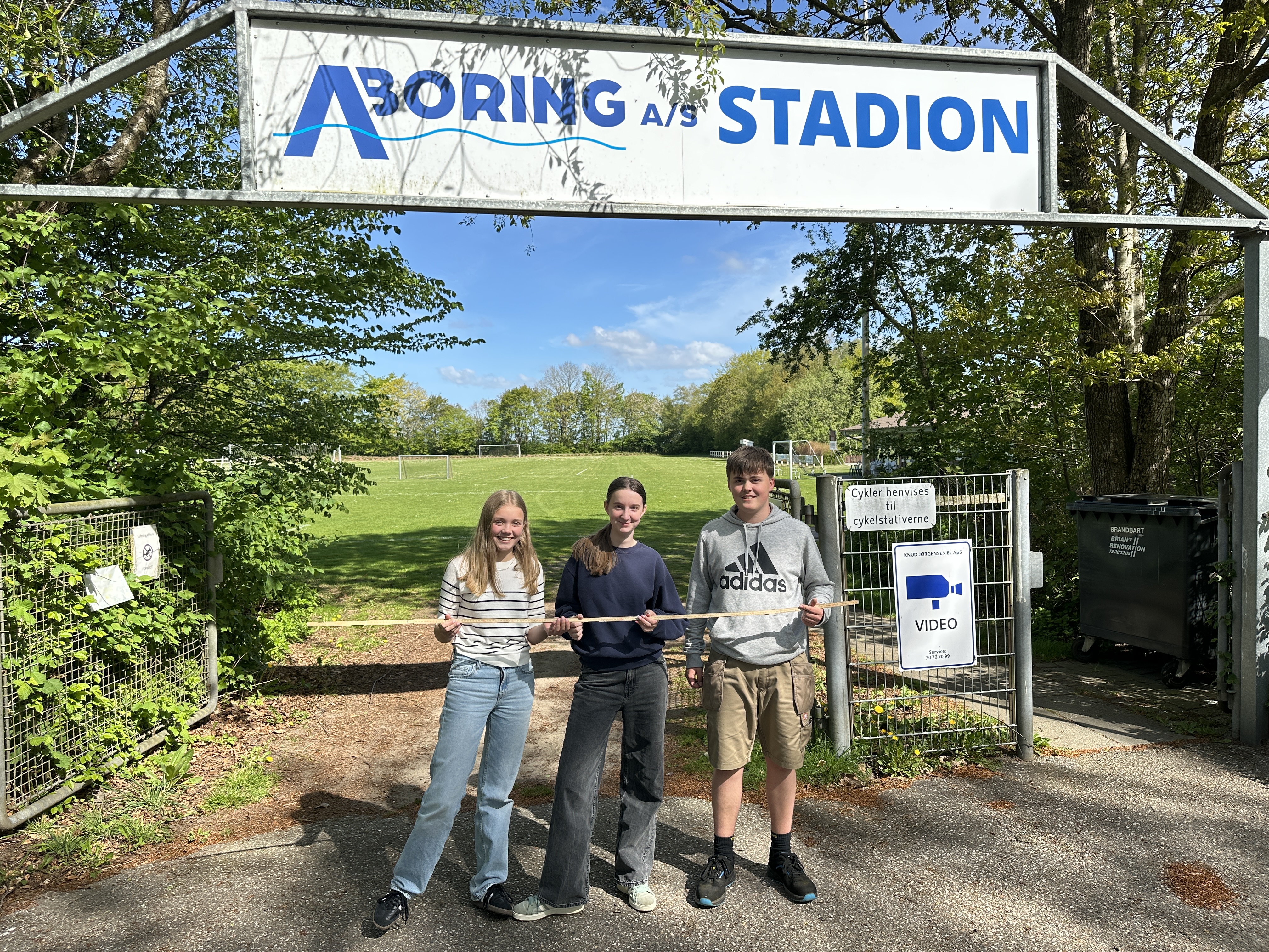 Elias Skovlykke Bygvraa, Andrés A R Henriksen, Maja Vingborg, Nicoline Donslund og Casper Frahm fra 7. klasse på Hejnsvig Skole har valgt Håndværk & Design som valgfag. De arbejder på at lave et stort skilt til indgangen ved Hejnsvig Stadion, som skal markere, at Legens Festival kulminerer ved stadionet.