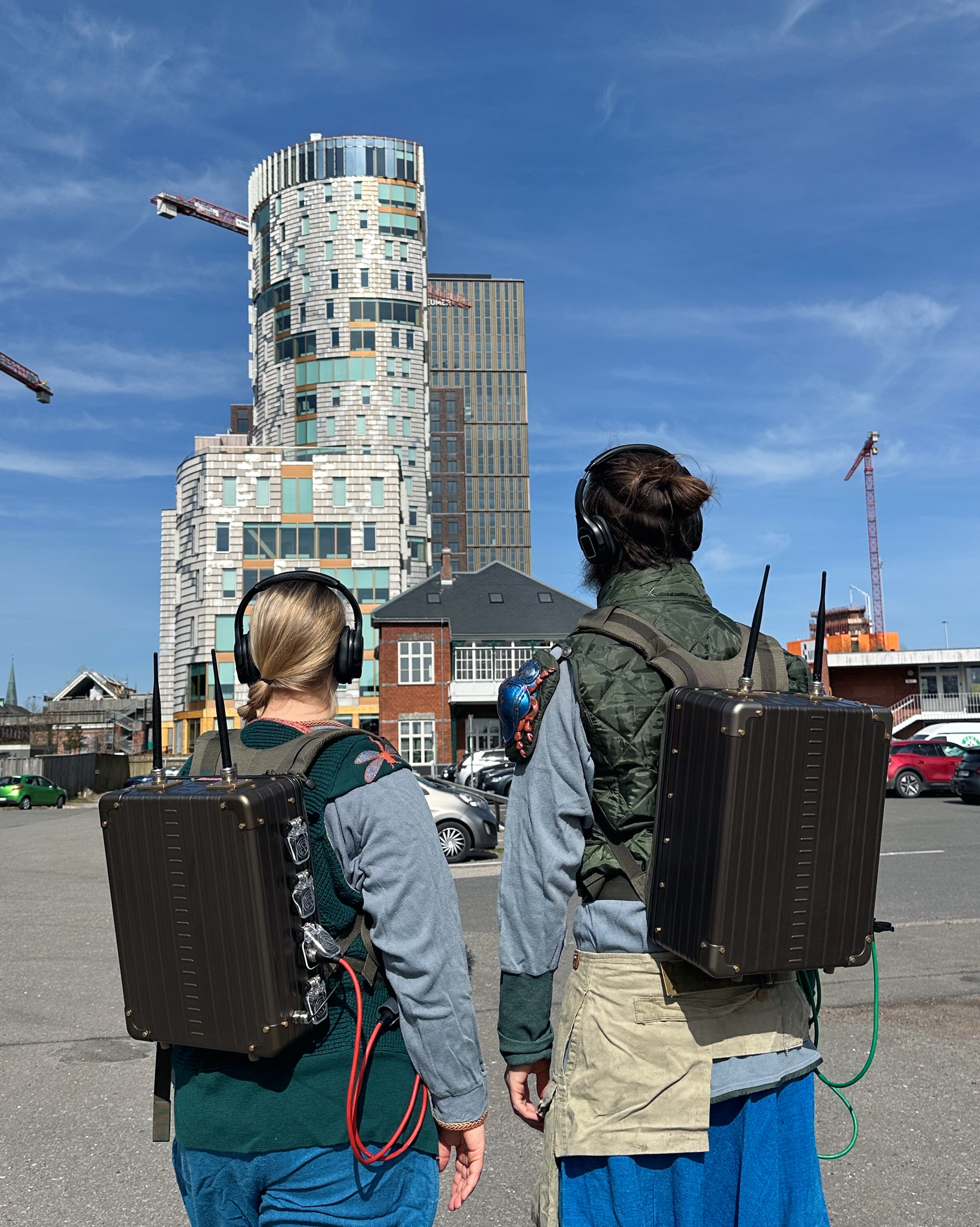 Publikum udstyres med høretelefoner og lyden transmitteres via to specialbyggede rygsække