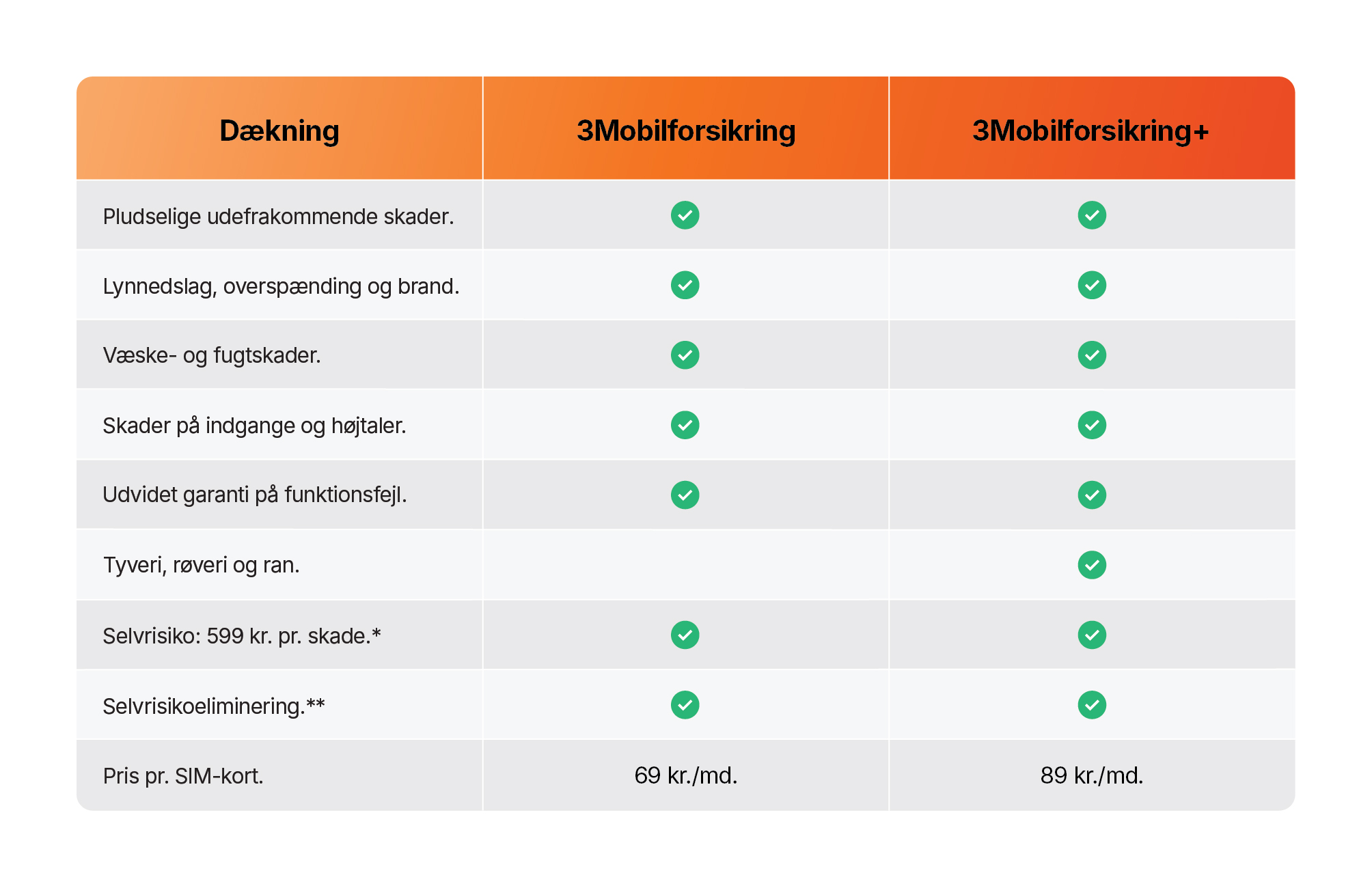 ”Vi har besluttet at give vores forsikringstilbud et løft og introducerer i dag 3Mobilforsikring, der erstatter 3Forsikring. Kunder, der vælger 3Mobilforsikring, kommer til at få et markant forbedret og mere fleksibelt produkt i forhold til det, vi kunne tilbyde med 3Forsikring. 3Mobilforsikring dækker altid dén enhed, som SIM-kortet sidder i og altså ikke kun én specifik enhed. På den måde får kunderne mere fleksibilitet og behøver ikke bekymre sig om forsikringen, når de skifter telefon eller bruger deres SIM-kort i en anden enhed.”
