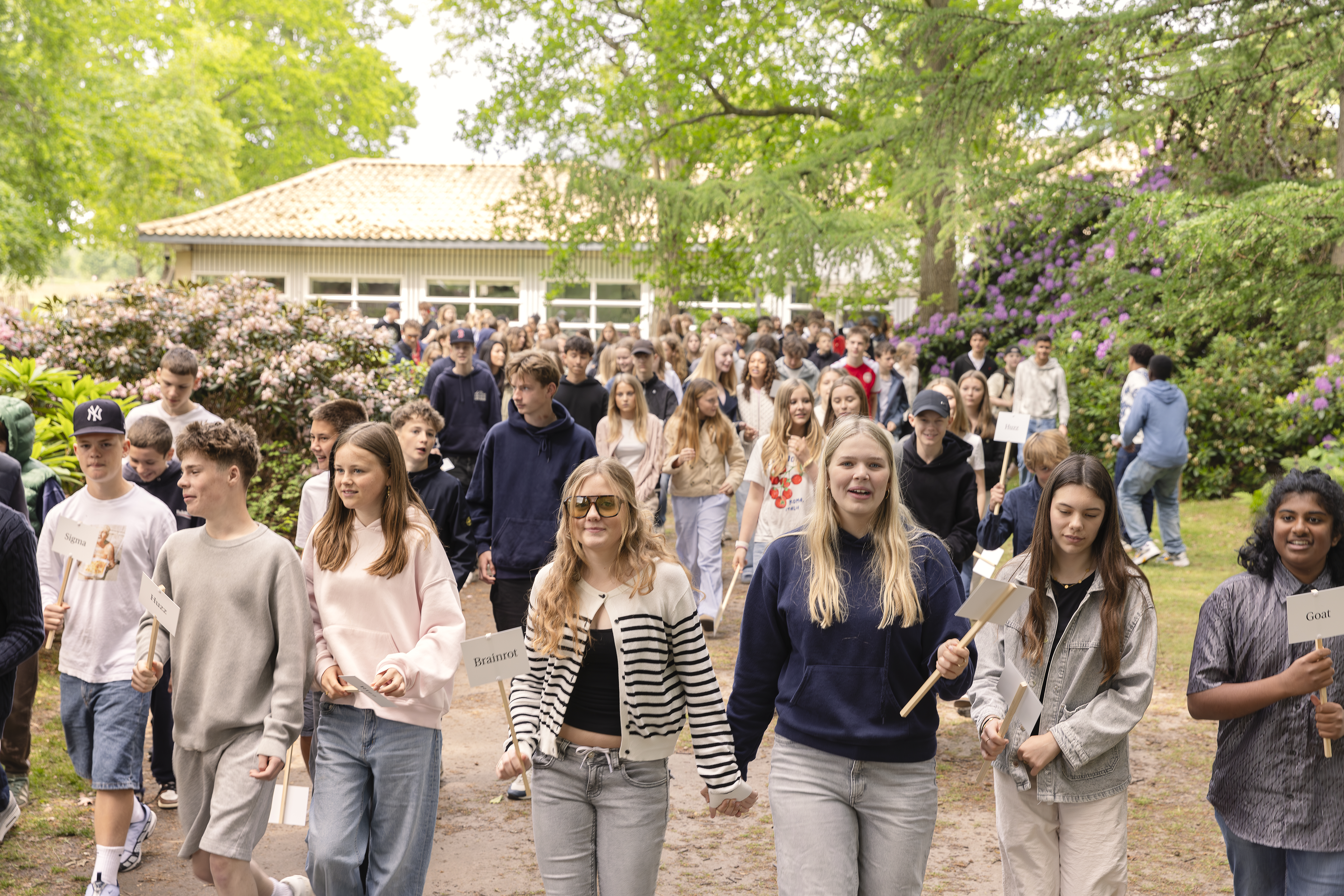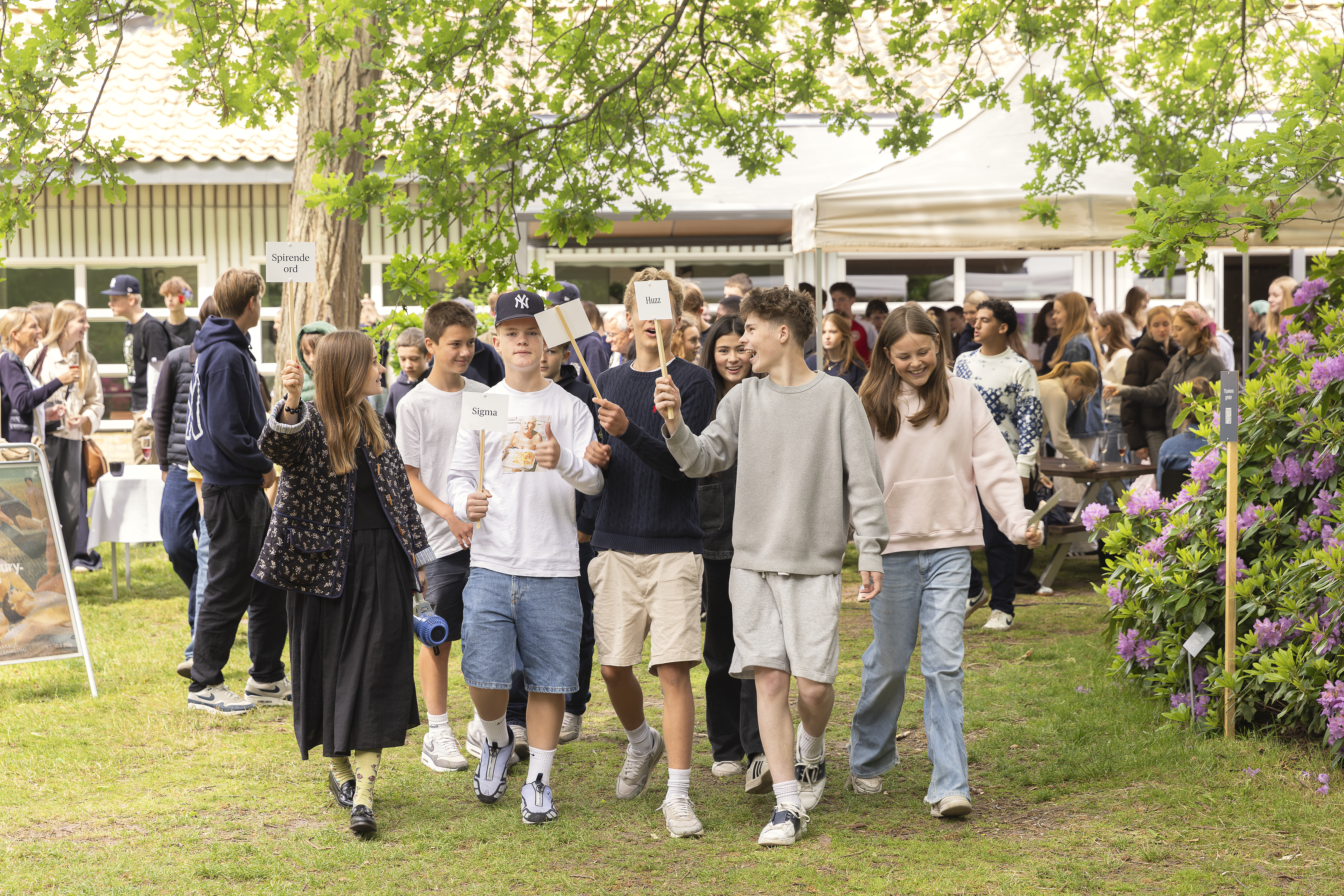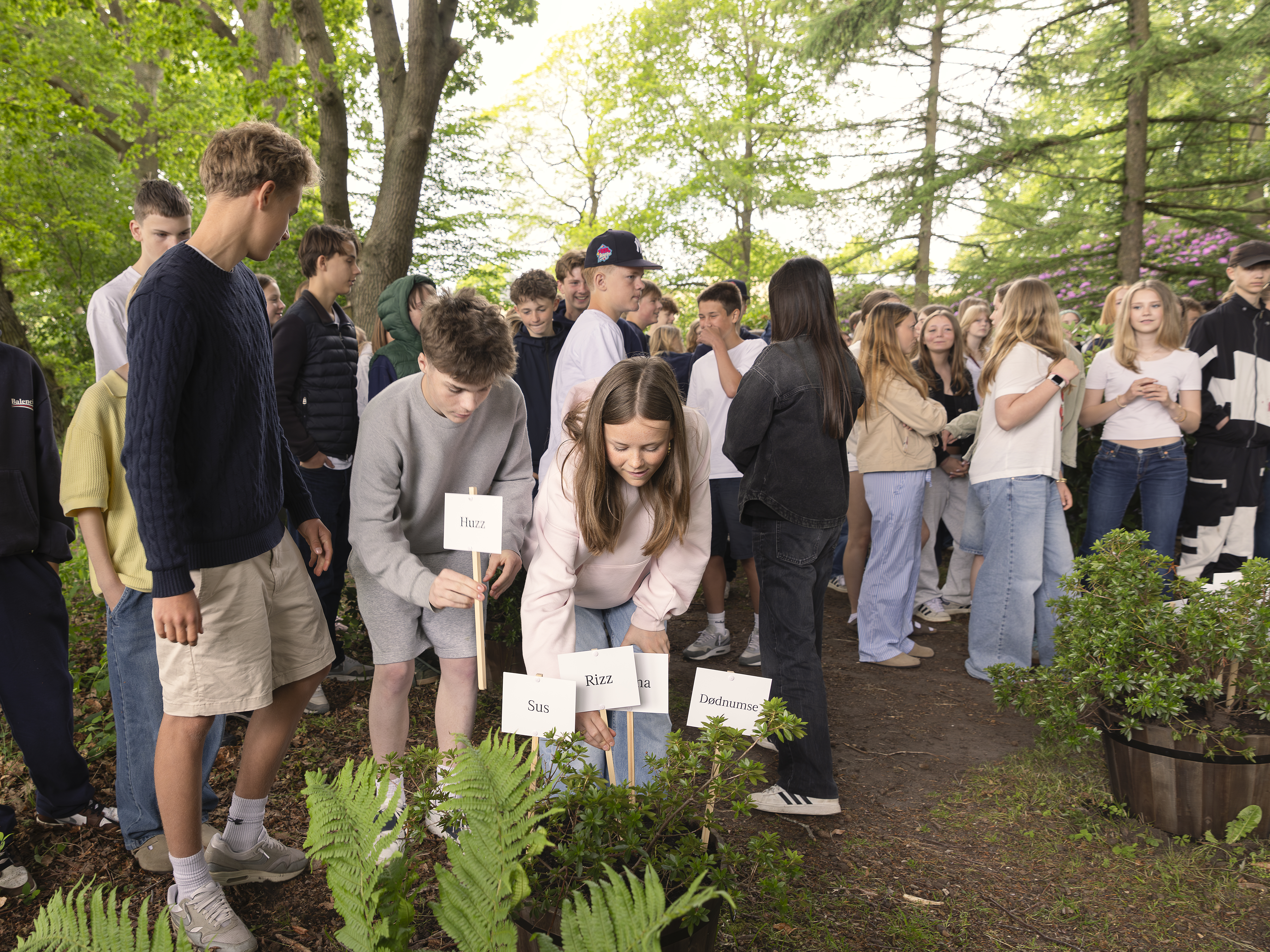 I dag blev en ny generation af spirende ord anno 2025 plantet i Nivaagaards Park af unge fra 7.-8. klasser i Nordsjælland. Det er seks år siden, at det populære 'Reservat for truede ord' fik selskab af de unges spirende ord - nye ord, der har fundet vej ind i sproget, og måske er kommet for at blive eller blot er på besøg.