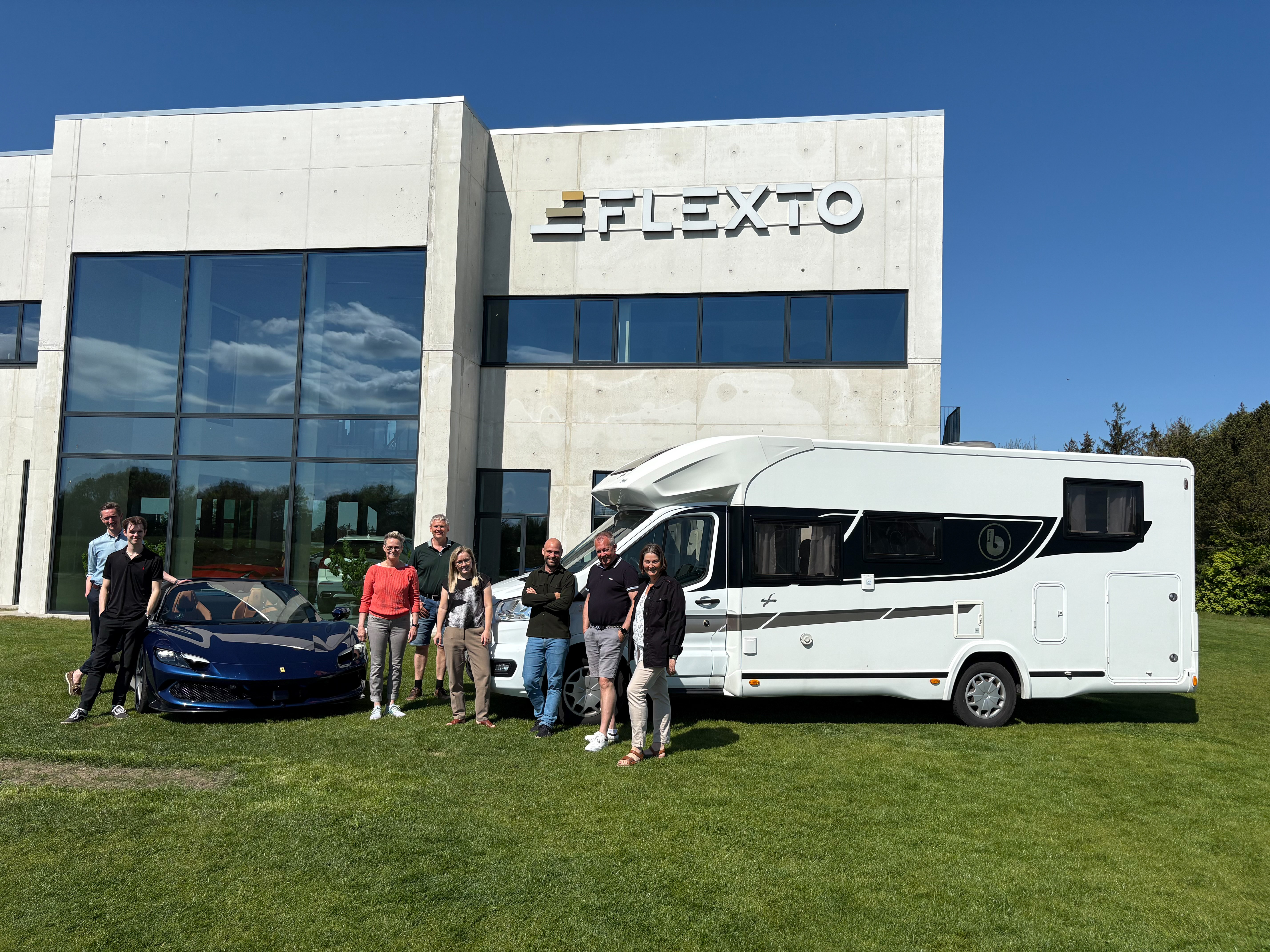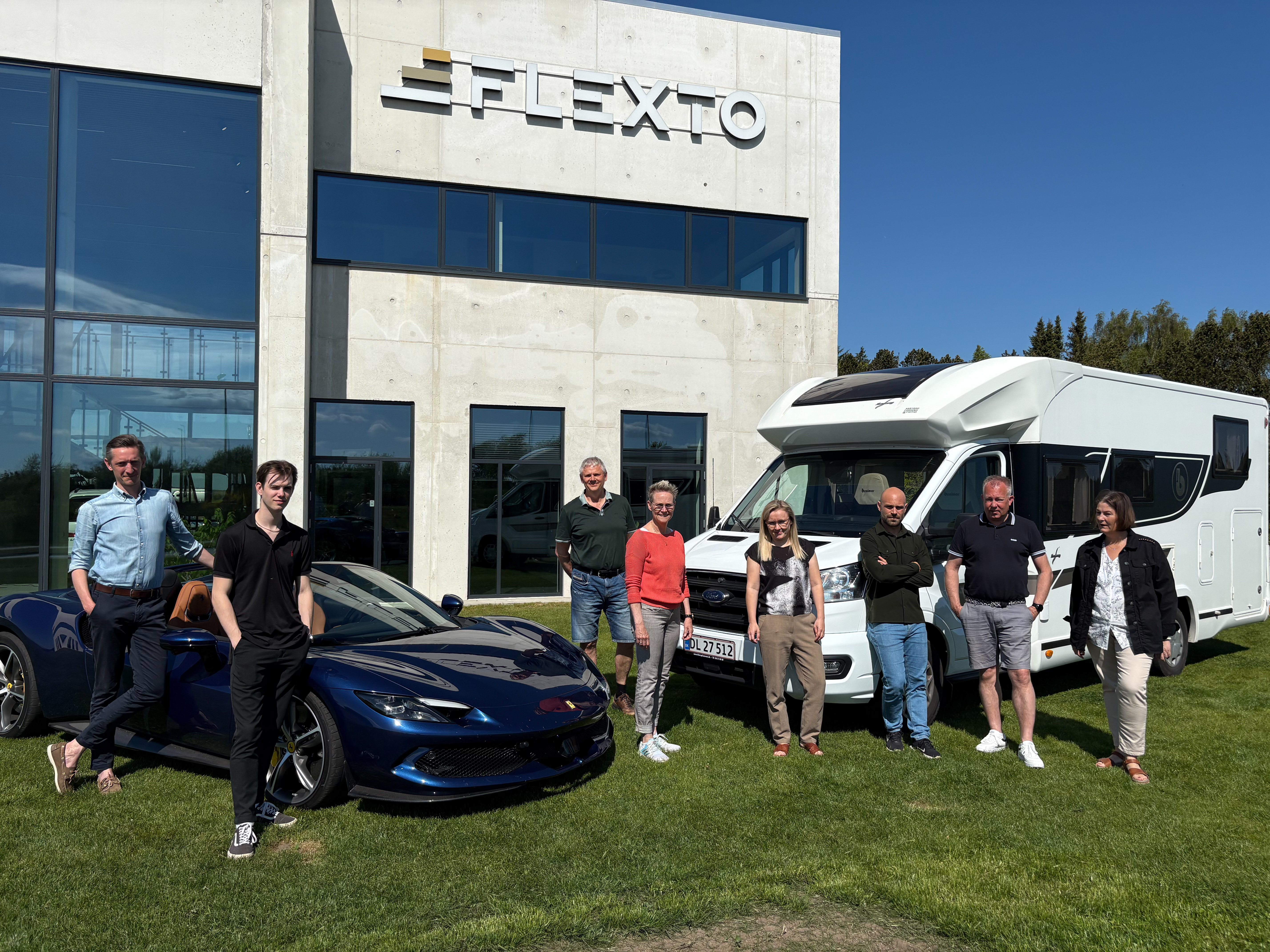 Støvring, 27.05.2025 – Bag indgangspartiet til Flexto A/S i Støvring står både en Ferrari 296 og en Audi TT. Men som noget nyt tilbyder selskabet nu også flex- og sæsonleasing af autocampere i samarbejde med en forhandler i Harrislee syd for den dansk-tyske grænse.