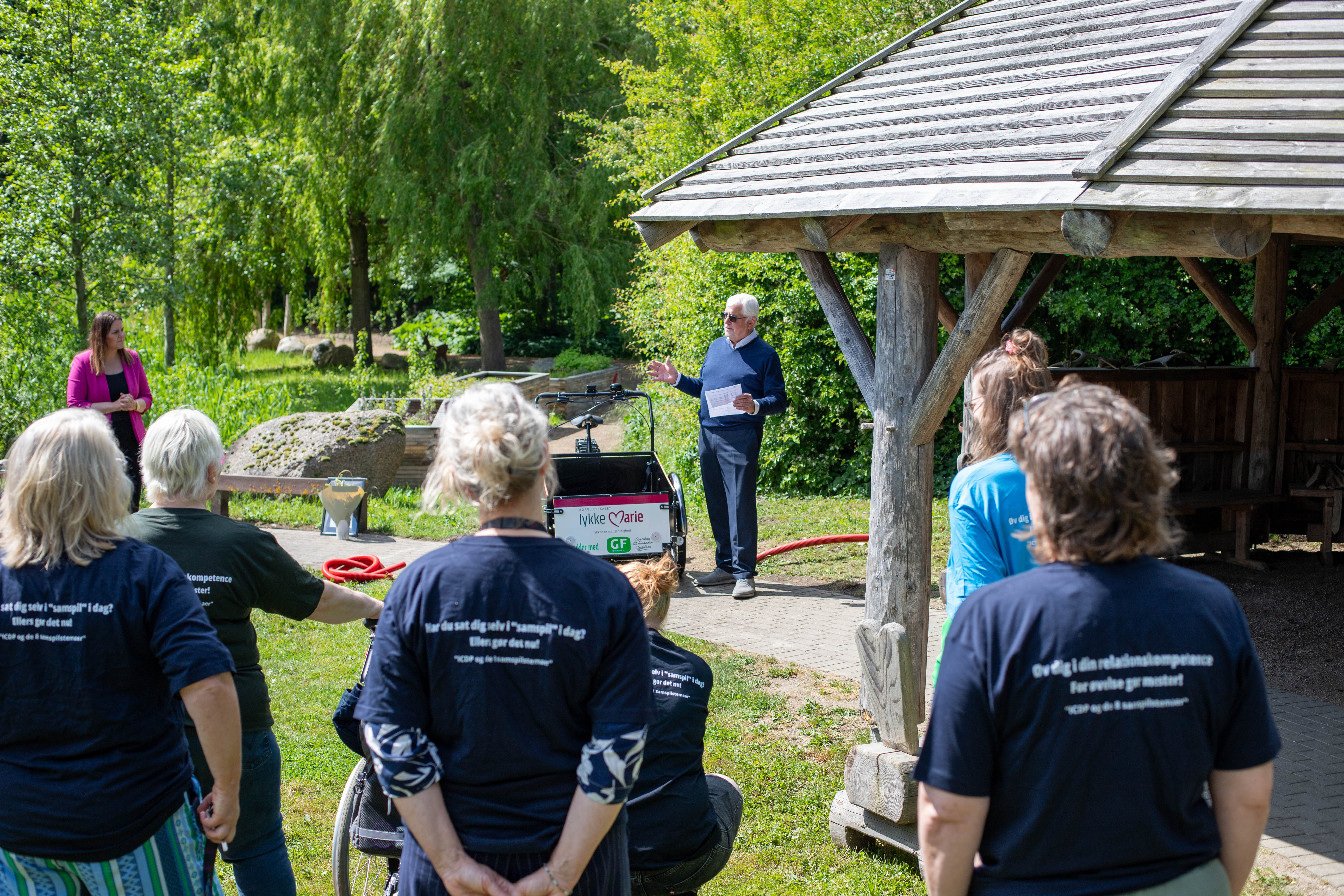 BILLEDREPORTAGE/SLANGERUP – Mandag den 26. maj modtog Bofællesskabet Lykke Marie GF Fondens Trafiklegat. Støtten går til indkøb af endnu en ladcykel med plads til kørestol, som gør det muligt at tage på cykelture for at få et fysisk og mentalt boost.