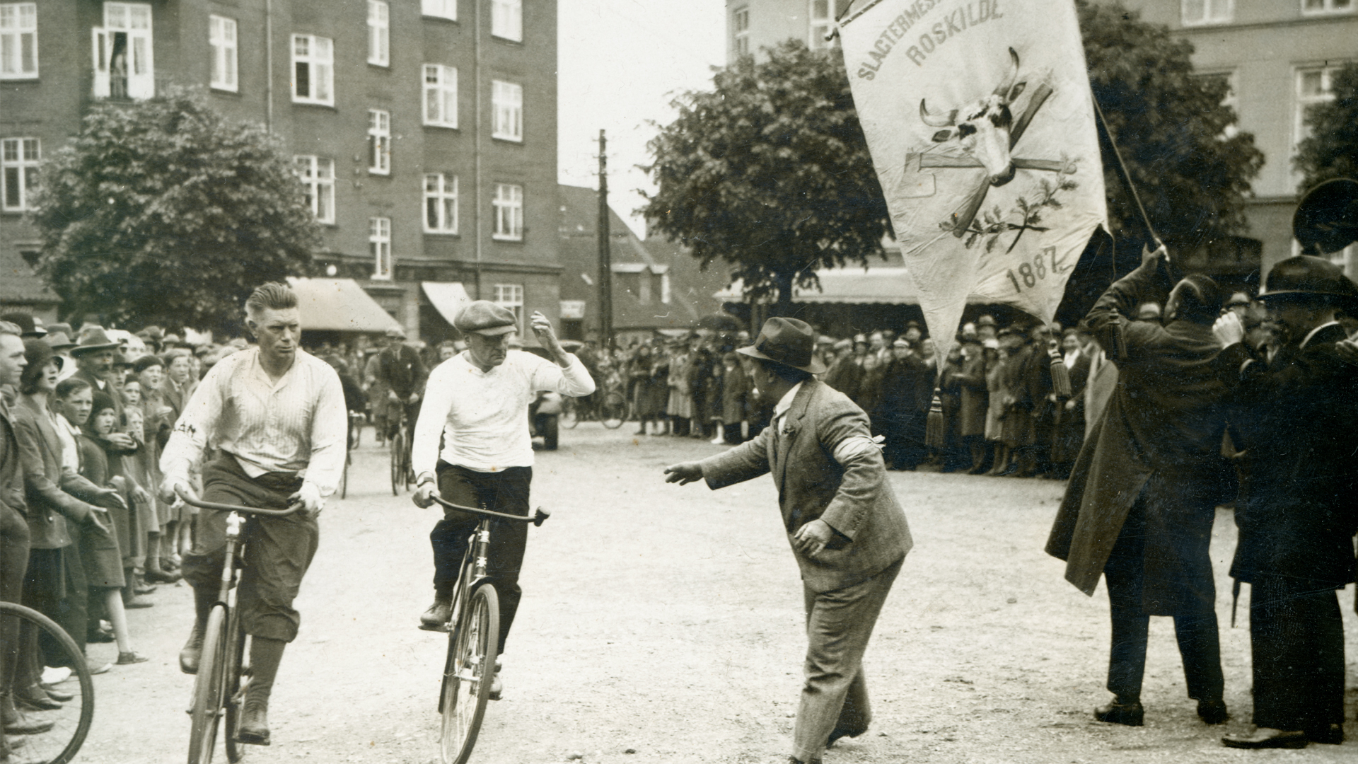 Det er hovedingredienserne i et af de mest gakkede, store cykeldramaer i Roskildes historie. Et drama, der samtidig er en aktuel fortælling om spisevaner – og som hele byen nu kan få en smagsprøve på i særudstillingen med den passende titel ’Den utrolige og sandfærdige historie om cykelløbet mellem Bøffen & Bananen’ fra den 11. juni.
