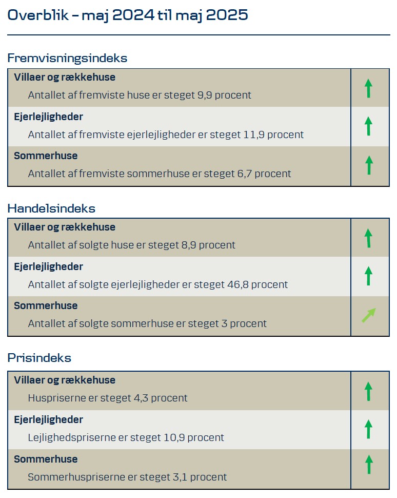 Boligbrief fra Home og Danske Bank viser fremgang i fremvisninger, handler og priser sammenlignet med maj sidste år