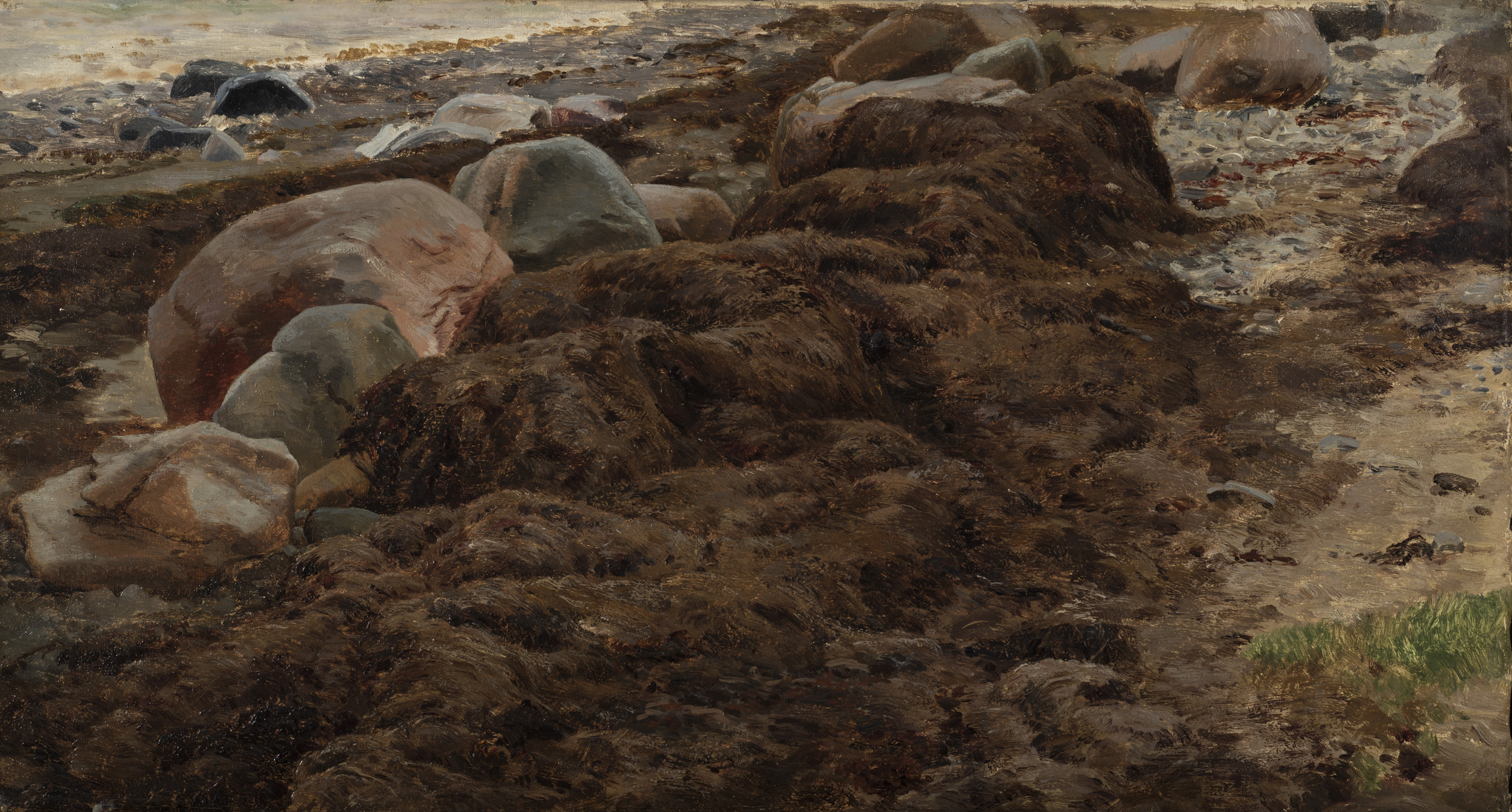 Naturskildringerne er ikke kun ideale – ofte ligger dynger af tang i forgrunden, og fylder, og lugter. Således optræder også forgængeligheden og bryder med den generelle fornemmelse af tidløshed i motiverne.