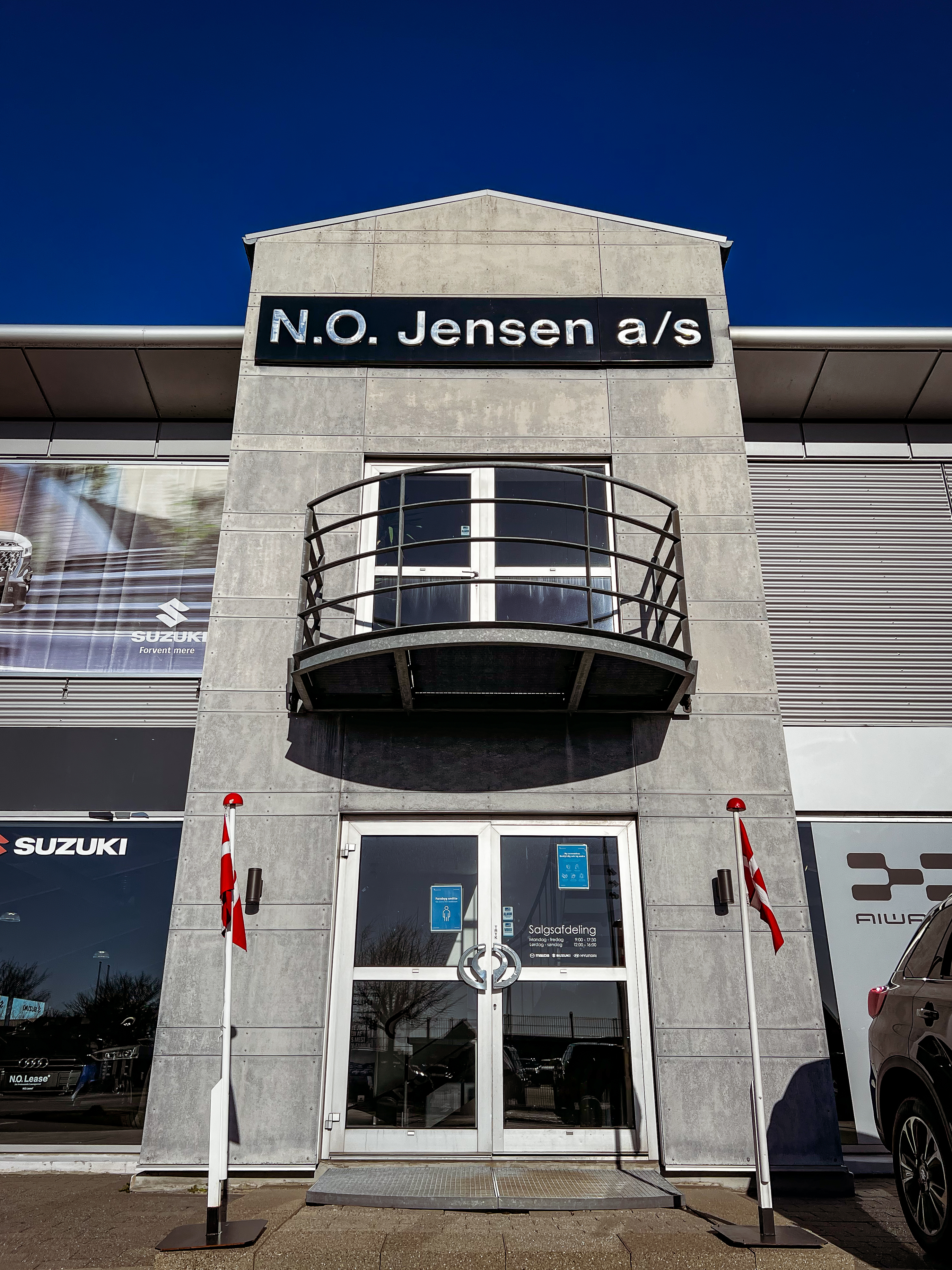N.O. Jensen begyndte med motorcykler i 1939 og har siden udviklet sig til et prisvindende bilhus i hjertet af Aalborg. I dag forhandler vi Mazda, Suzuki og brugte biler. Vi tilbyder professionel service på alle bilmærker – inkl. skadecenter og autoriseret værksted.