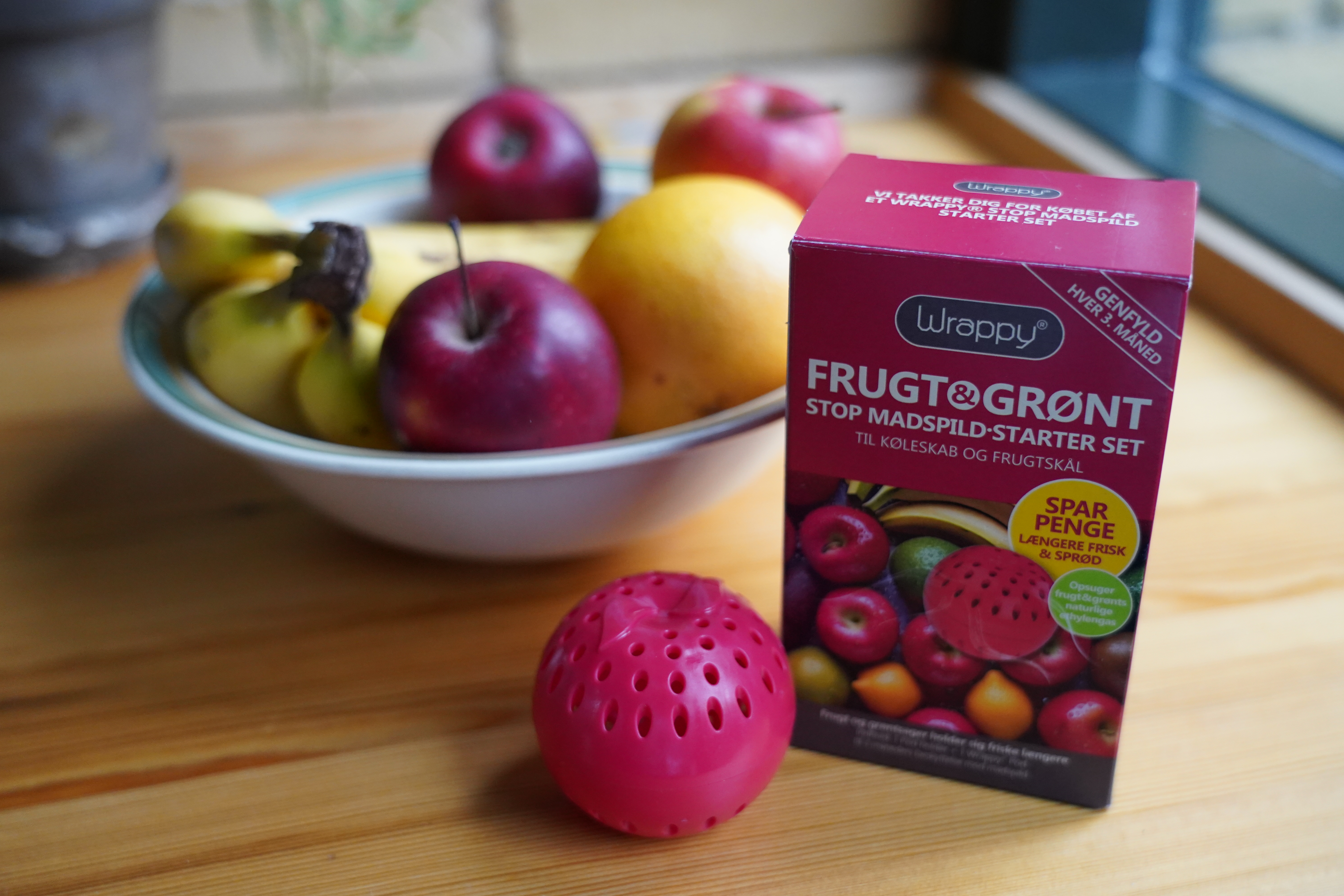 Men nu præsenterer Coop en madspildsløsning, der forlænger holdbarheden på frugt og grønt. Produktet hedder Wrappy, og det består af en lille bold, som man lægger i nærheden af sin frugt og grønt. Bolden indeholder en pose, der opsuger den ethylengas, der får frugt og grønt til at modne og gå i forrådnelse. Dermed bliver modningshastigheden sænket, og holdbarheden på varerne forlænges. Metoden bruges i forvejen i industrien på frugt- og grøntlagre og under transport af frugt og grønt - også til økologiske varer. Men Coop gør nu madspildsløsningen tilgængelig for de danske forbrugere.