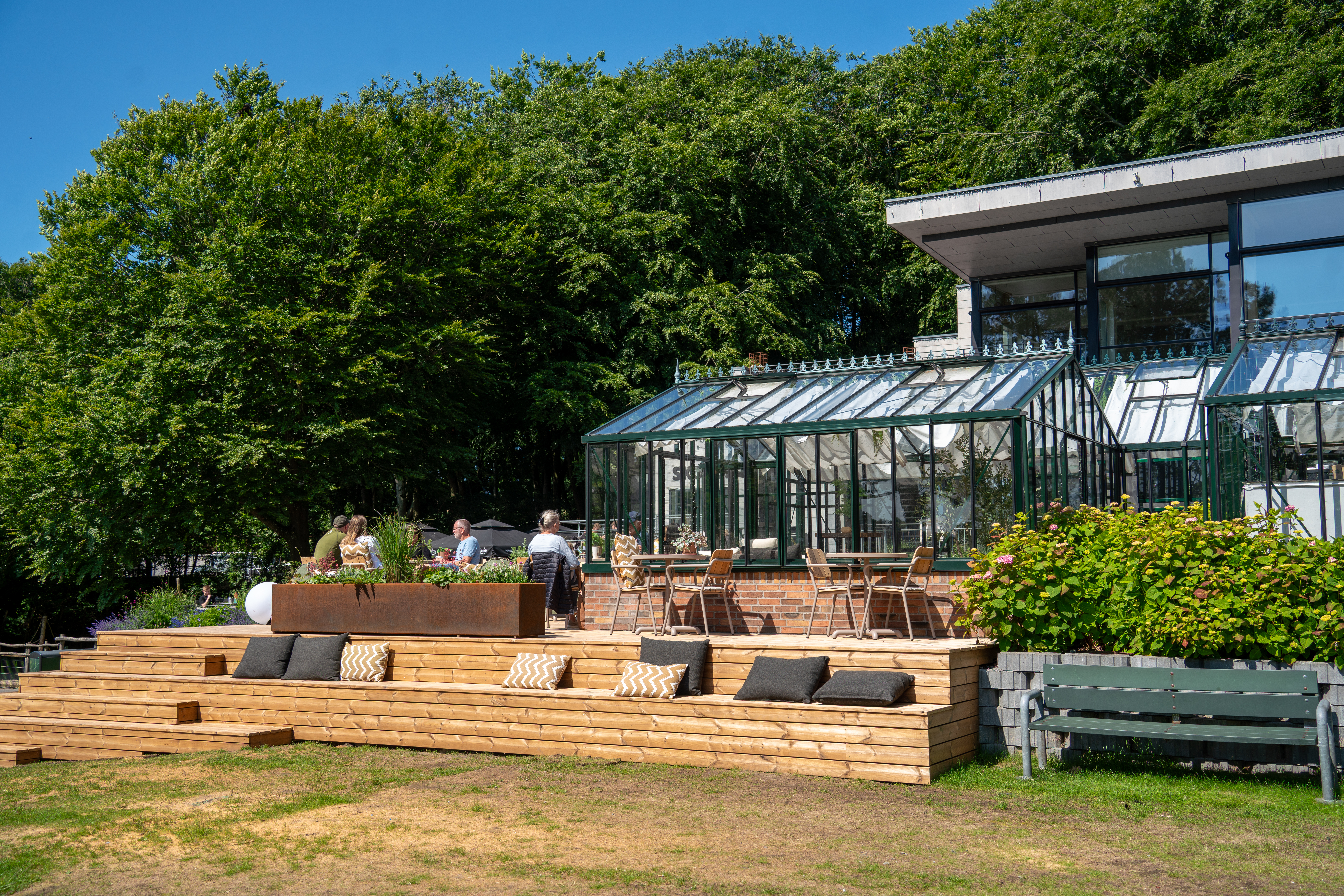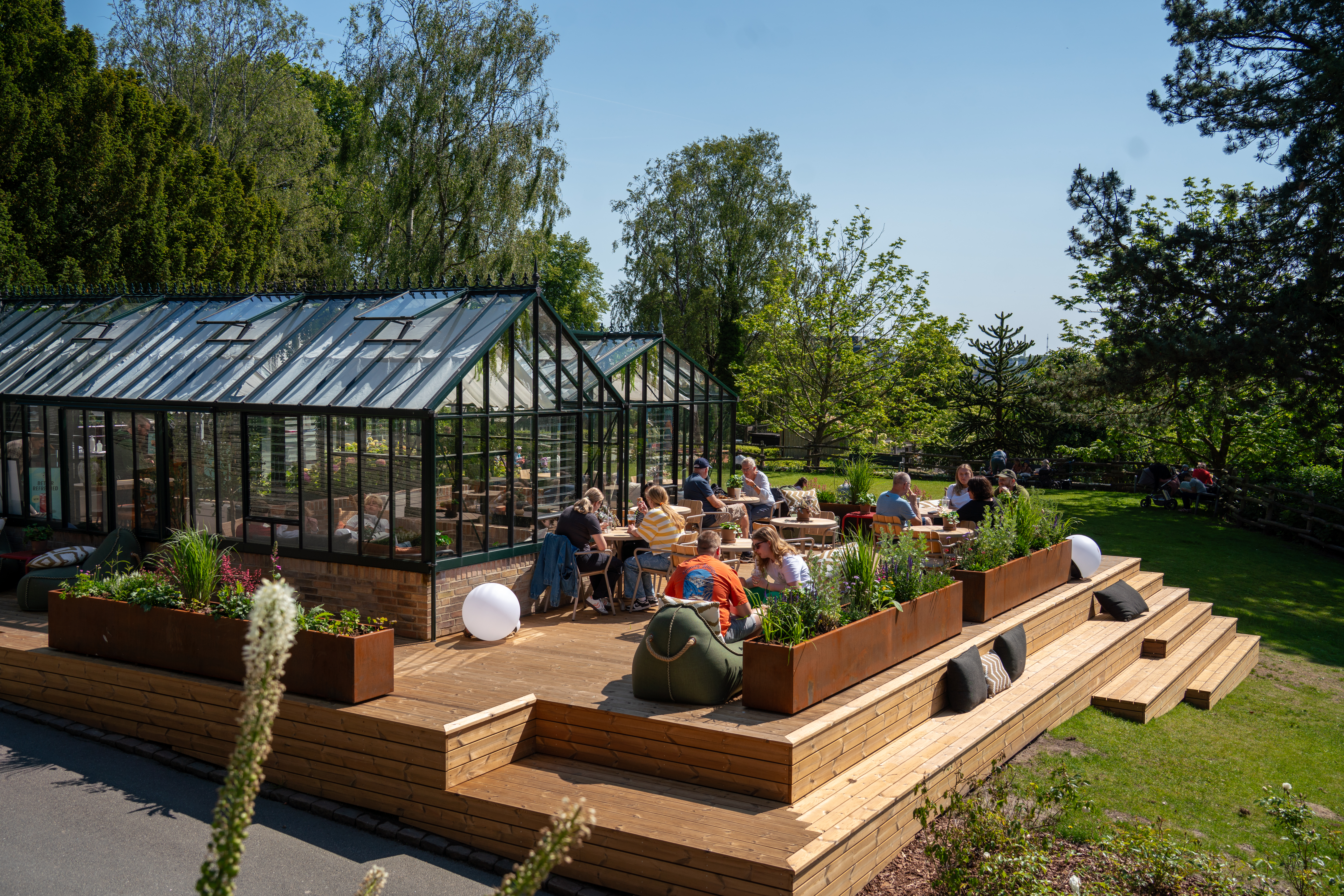 Orangeriet ligger centralt ved den store plæne overfor Skovbakken og udgør et naturligt mødested for havens gæster. Som en del af den nye satsning er der anlagt en stor træterrasse rundt om bygningen, hvor gæsterne fremover kan nyde deres drikke under åben himmel.