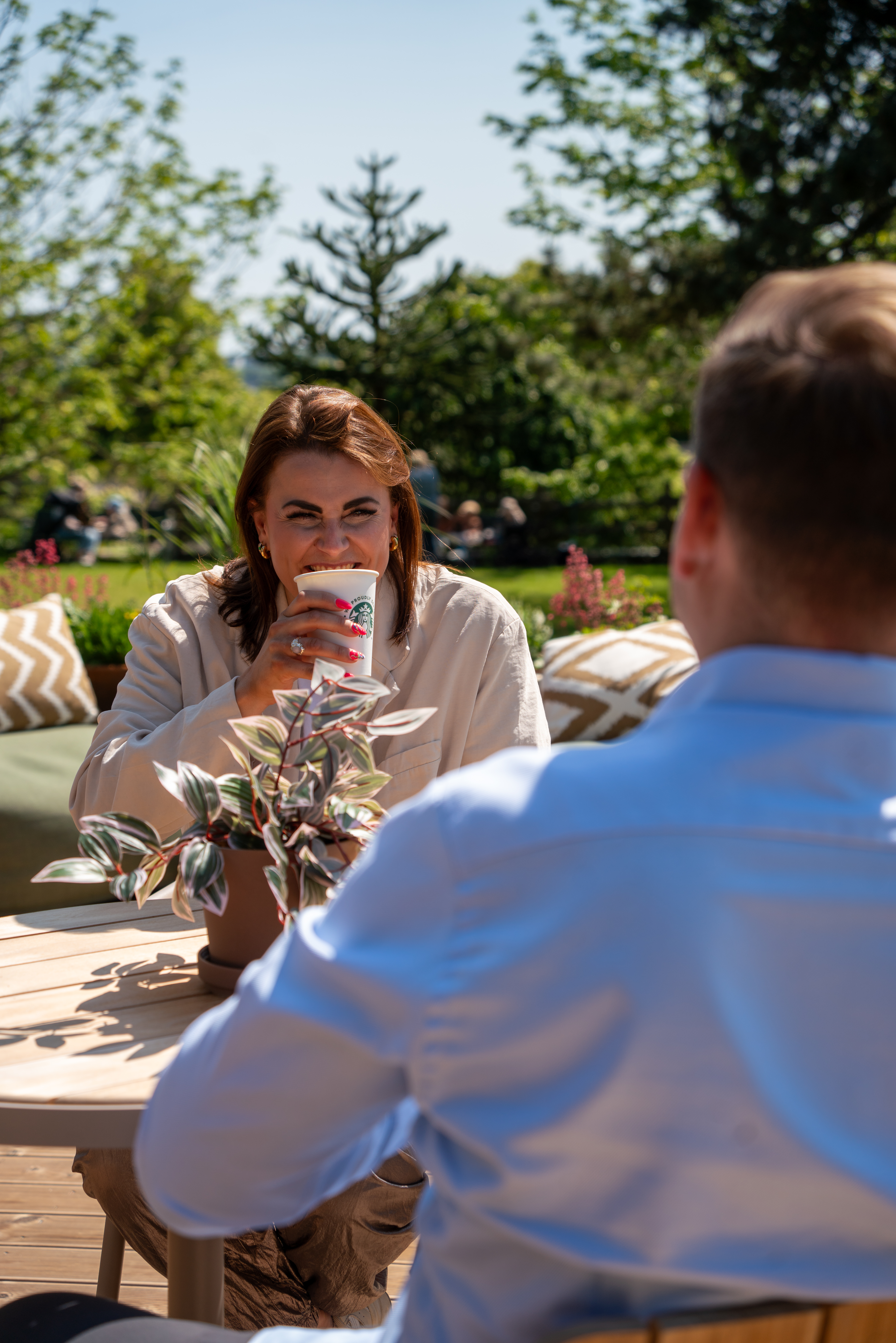 Orangeriet er allerede i fuld gang med at brygge, så du kan nyde en Starbucks®-kaffe to-go ved det nye anlæg eller tage en velfortjent pause i caféens grønne omgivelser midt i haven.