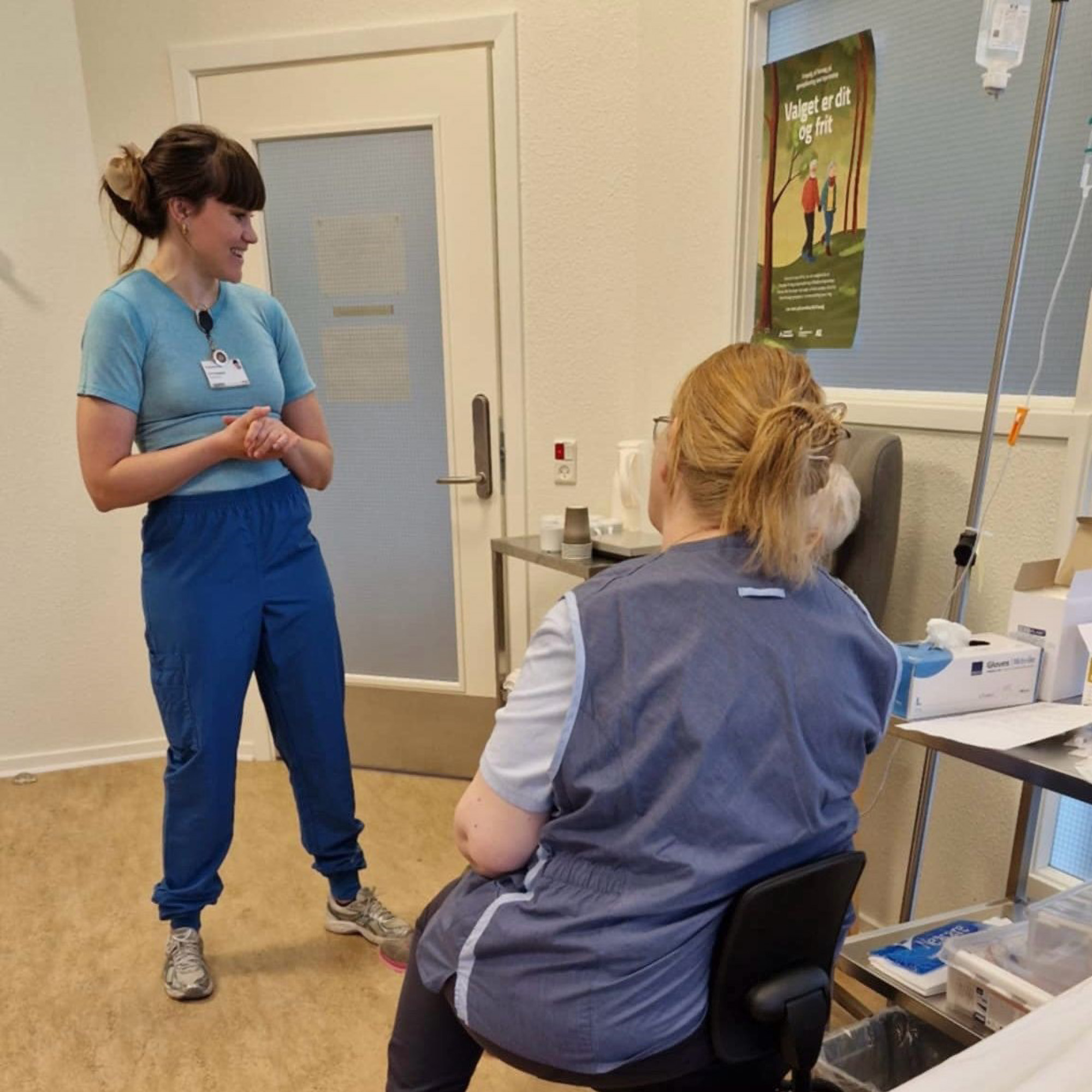 Sygeplejerske Line Kongsbak fra Medicinsk Afdeling har været med til både at oplære de kommunale sygeplejersker og opstarte behandlingstilbuddet, der nu har været i gang i et par måneder som en del af kommunens midlertidige opholdspladser. Indtil videre har 10 borgere modtaget infusionen lokalt, og både borgere og sundhedspersonale melder positivt tilbage.