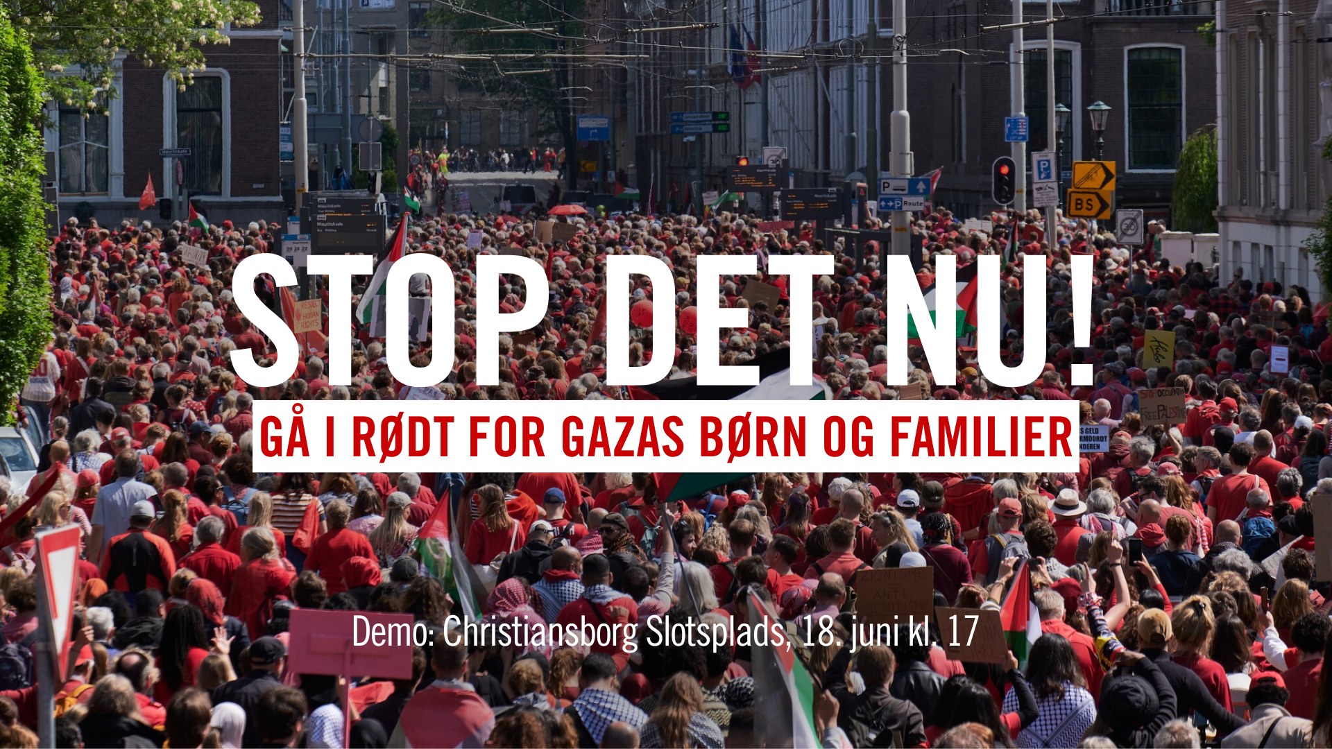 Demonstrationen foregår onsdag d. 18. juni 2025 fra kl. 17.00–18.45 på Christiansborg Slotsplads.