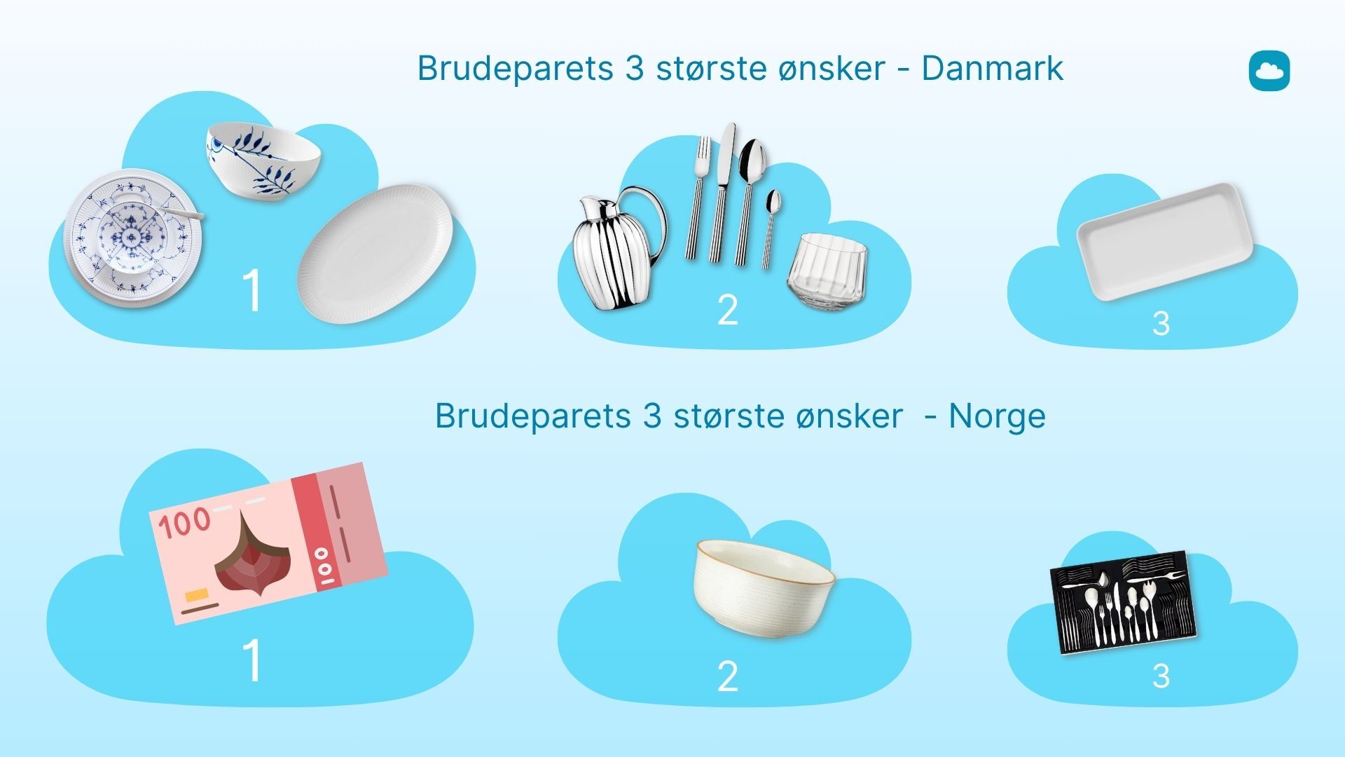 Slik ser de danske og norske brudeparenes topp 3 ønskelister ut: