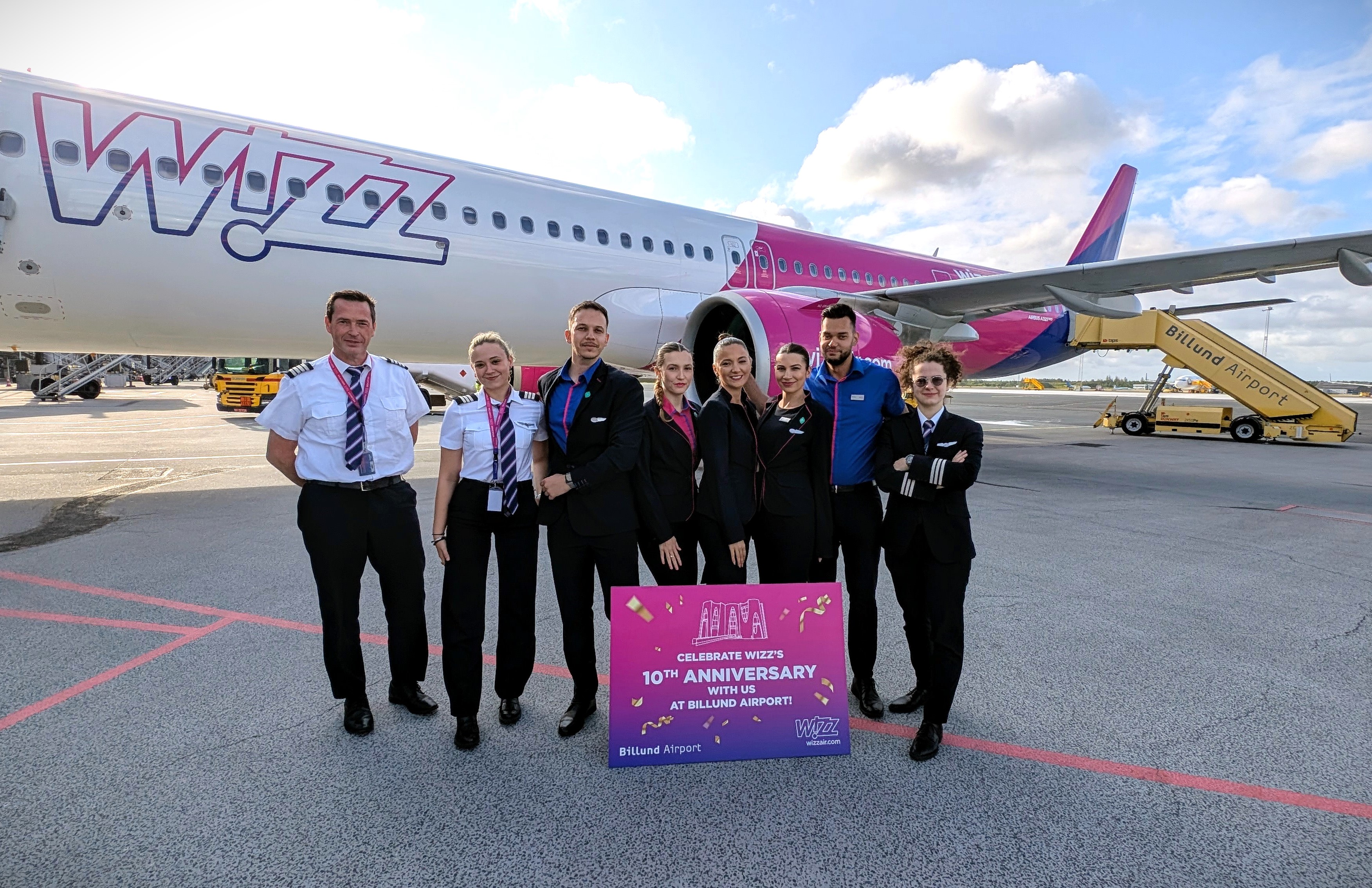 Billund, 19. juni 2024 – Det ungarske lavprisselskab Wizz Air markerer i dag ti års jubilæum i Billund Lufthavn. Siden første afgang 19. juni 2015 har selskabet udviklet sig til en væsentlig aktør i lufthavnens netværk – med tæt på 2 millioner passagerer transporteret til og fra det vestdanske trafikknudepunkt.