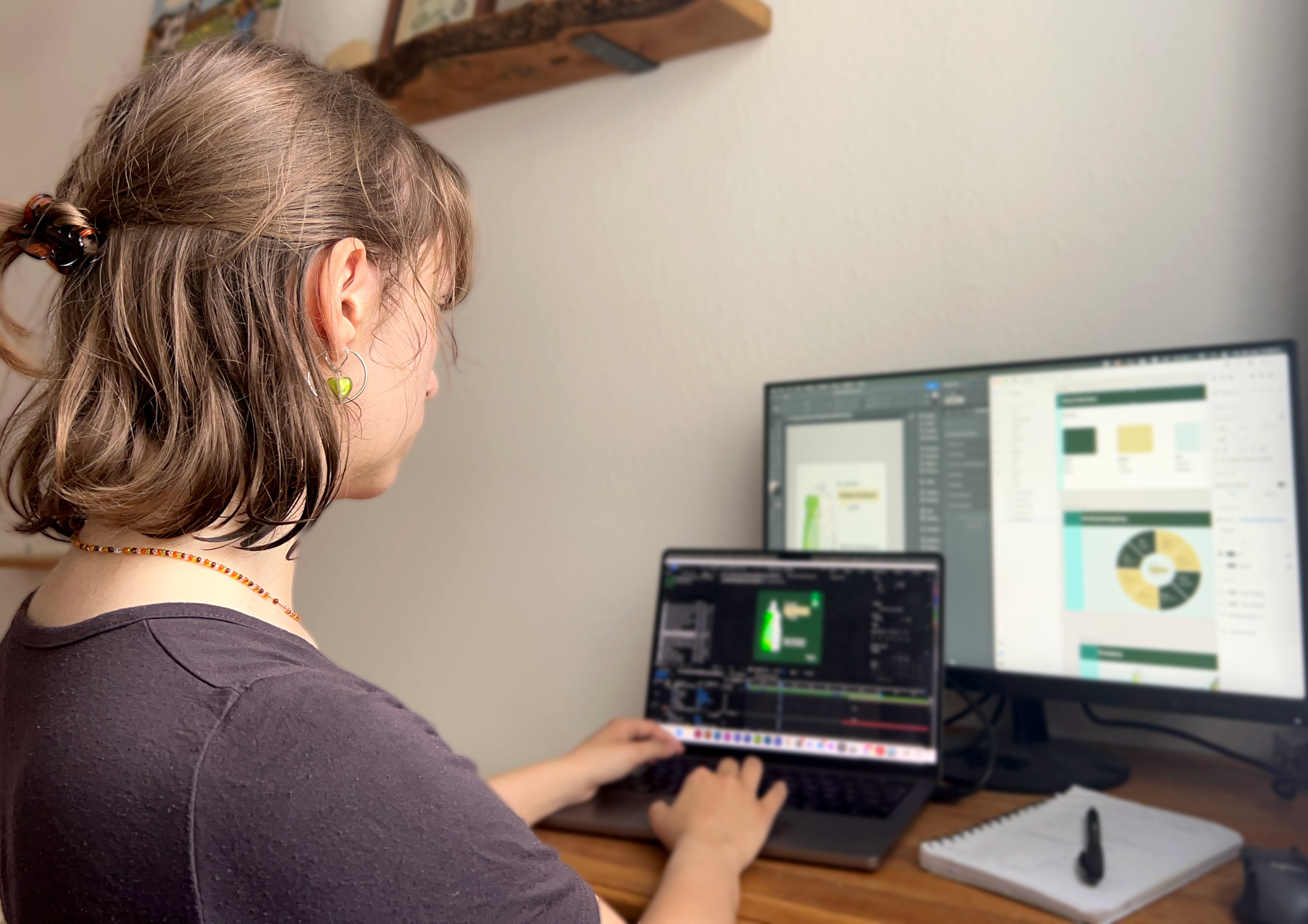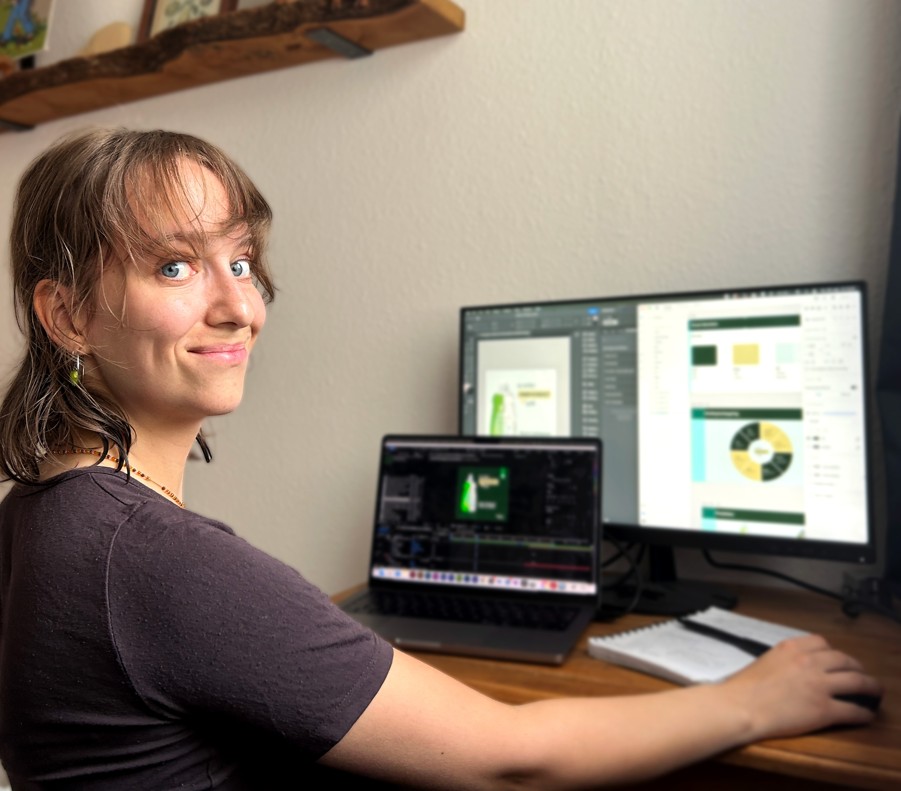 - På uddannelsen får vi undervisning i bæredygtighed. Der er meget, man kan tænke på, især i forhold til emballagedesign, materialevalg, og hvordan man kan mindske spild. Jeg synes, det er rigtig fedt at tænke bæredygtighed ind i de ting, jeg laver – og jeg synes nærmest, at jeg kommer til at tænke på det automatisk. Hvis jeg sidder med en opgave og tænker, at der skal produceres en hel masse flyers, er det naturligt at overveje, om der findes en bedre løsning.