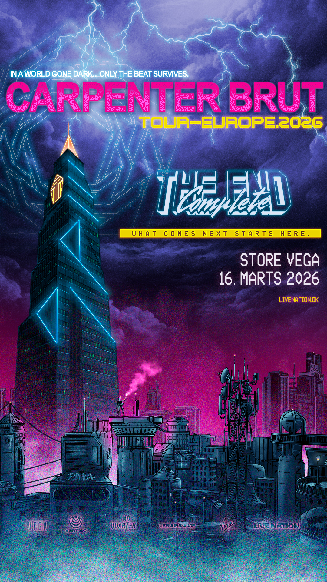 Siden 2012 har franske Carpenter Brut været en af de mest markante og toneangivende navne på den internationale synthwave-scene. Med en unik fusion af elektronisk musik, rock og 80’er-inspirerede lydbilleder har han skabt et dystopisk og filmisk univers, der både hylder VHS-æraens æstetik og sprænger rammerne for moderne liveproduktion.
