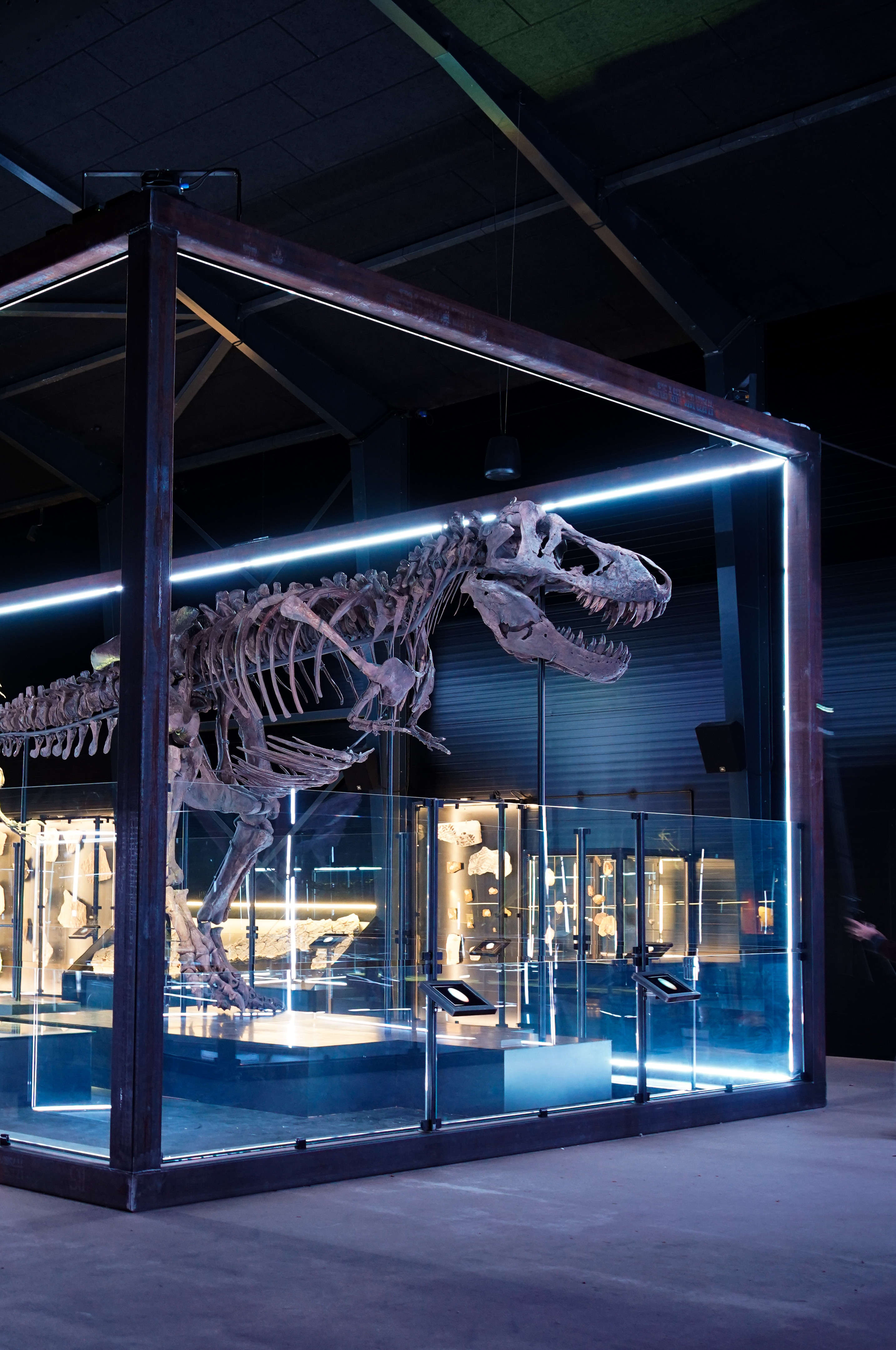 Den ægte, 11,6 meter lange og 66 millioner år gamle T. rex Trinity ankom til Evolutionsmuseet i maj 2025 og skulle alene være her til sæson 2025. Nu bliver den på Lolland til efteråret 2026.
