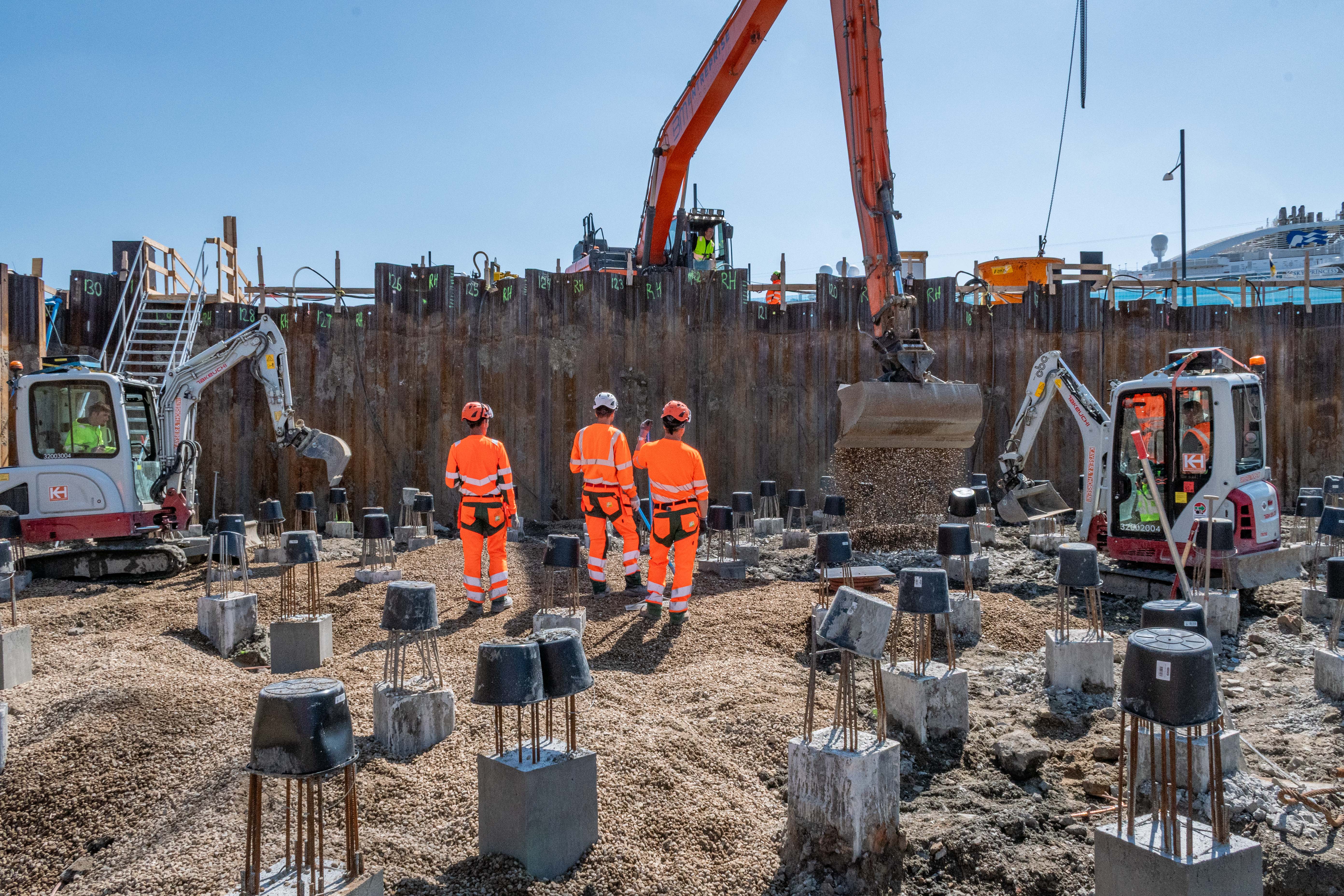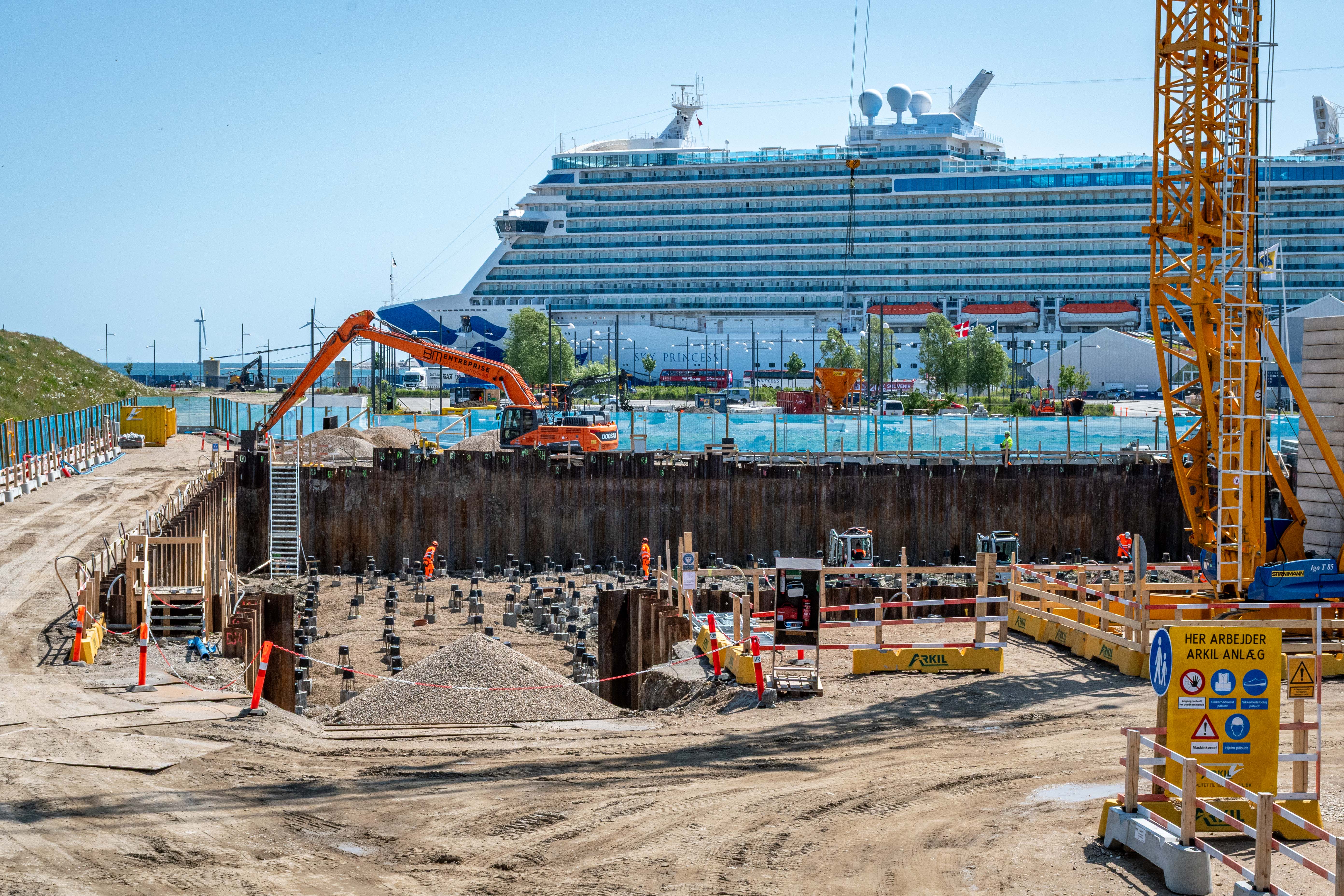 Det ligner mest bare et stort hul i jorden helt derude, hvor krydstogtskibene lægger til. Rå spunsvægge og den dybe udgravning står i skarp kontrast til det kridhvide krydstogtskib, der stikker adskillige etager op i luften.