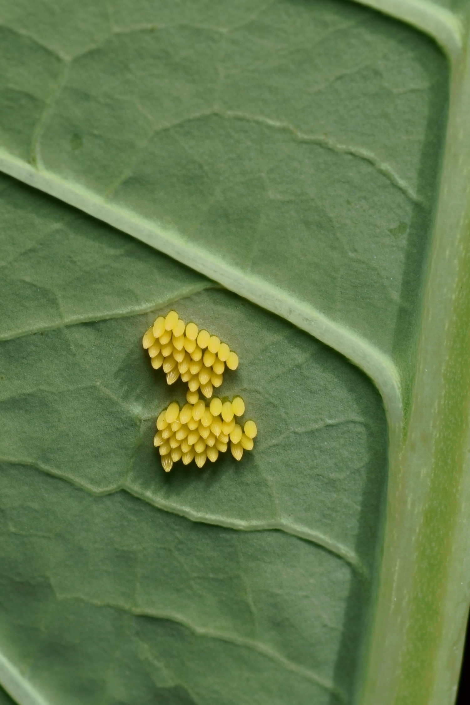 Kålsommerfuglen sætter en række æg på undersiden af bladene af kålplanter. Hver sommerfugl kan lægge op til 600 æg.