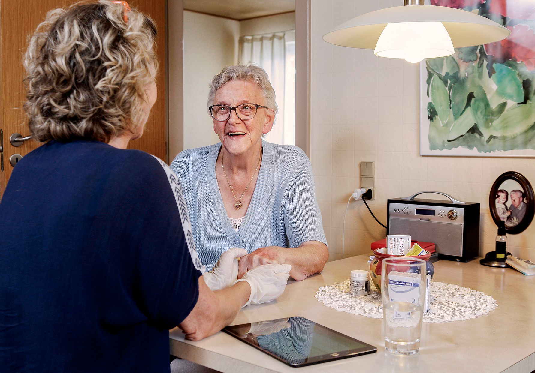 "Den tid, den kommunale sygeplejerske bruger på at finde svar via Axon, er ingenting i forhold til den tid, hun skal bruge på telefonen. Vi er blevet mere selvhjulpne og kan reagere hurtigere. Det skaber en faglig stolthed for medarbejderne, som oplever, at de lykkes bedre hos borgerne. Det er den bedste digitale hjælp inden for sygepleje, vi har fået længe” siger Gitte Nørgaard, chef for sygepleje og hjemmepleje i Herning Kommune.