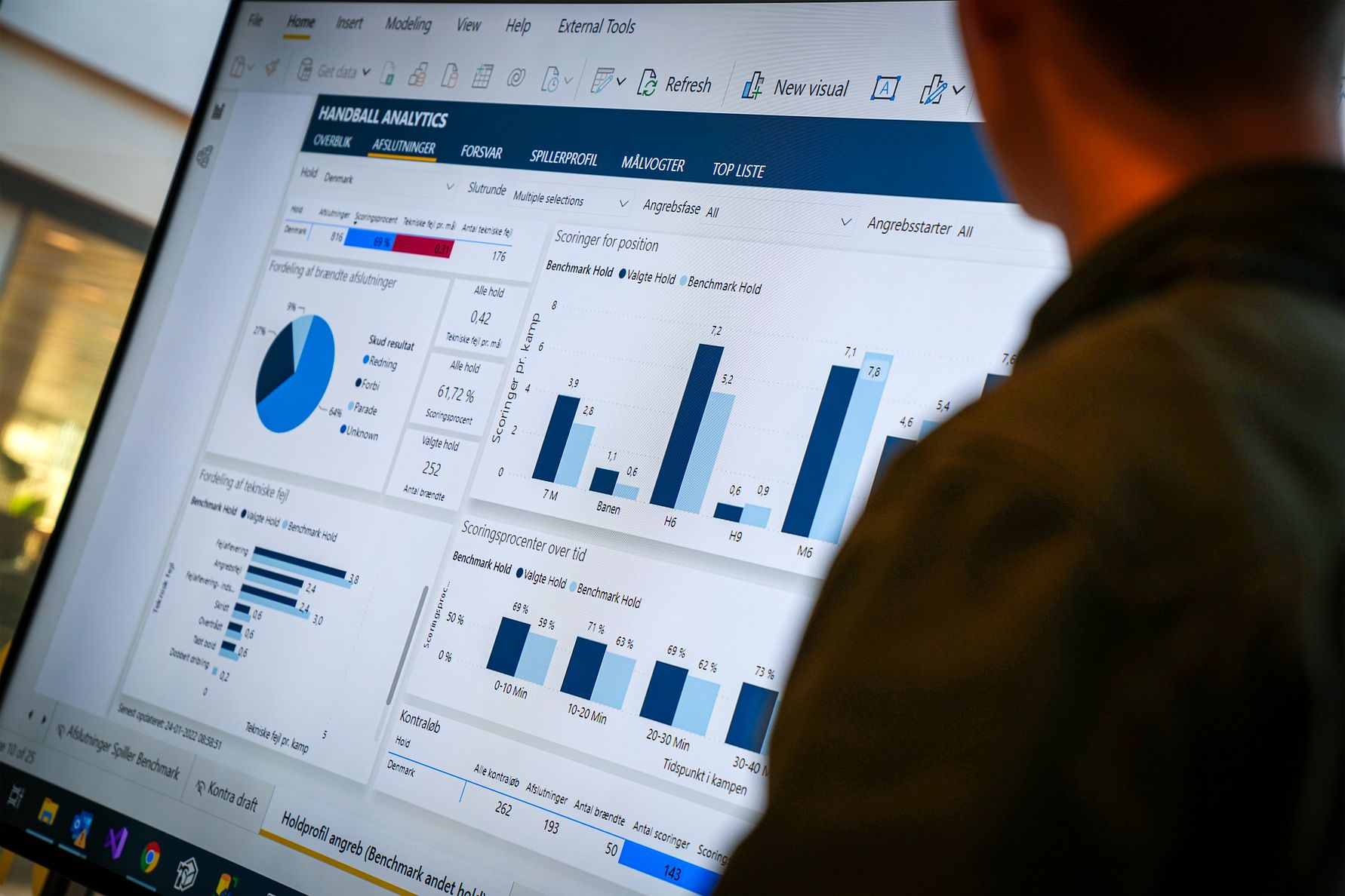 The solution functions as an analysis and visualisation tool that provides detailed insights into the many facets of the handball game, including scoring percentages, attack formations, game openings, missed shots and technical errors, all broken down by player, position, team or tournament. At the moment, the solution is being tested in TV2’s handball studio, where it has already been something of an eye-opener for TV2’s handball experts.