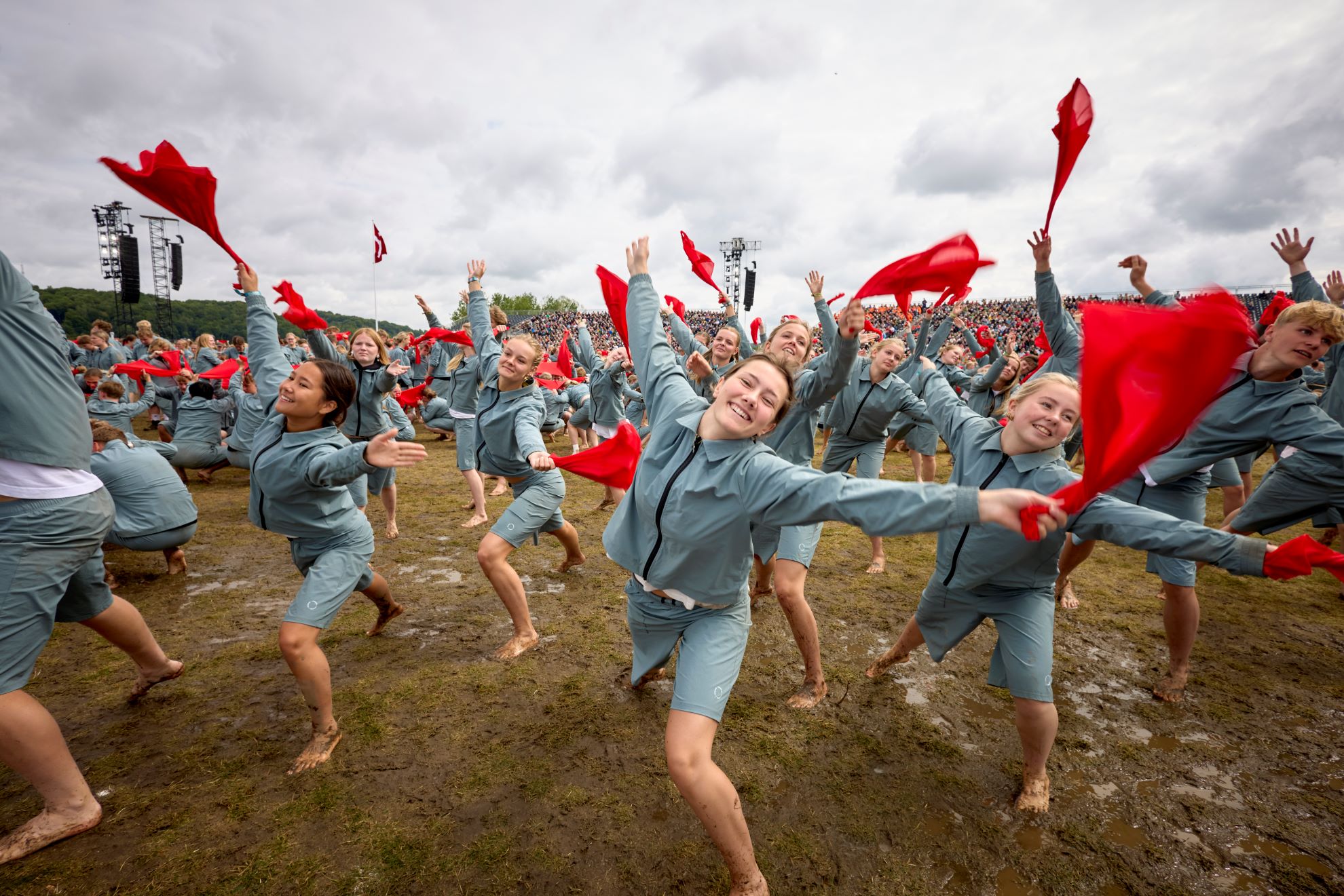 ”Sikke et fantastisk Landsstævne vi har haft. Vi har givet hinanden kæmpestore oplevelser og unikke øjeblikke. Det har været magisk. Nu står vi her under våde skyer og ser tilbage på en skøn uge. For når vi bevæger os sammen, bevæger vi hinanden, og vi bevæger verden,” sagde Charlotte Bach Thomassen i sin tale.