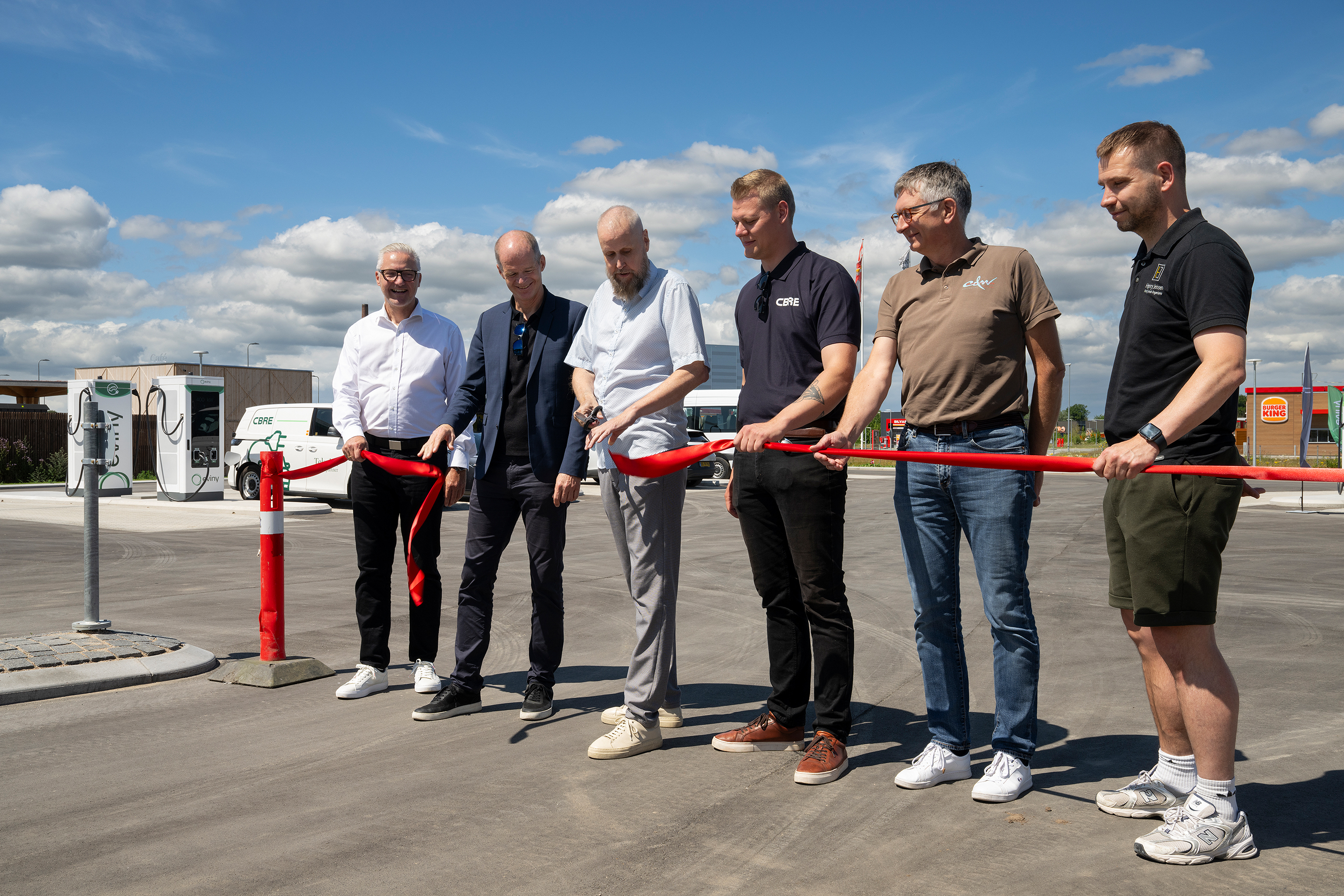 Indgangen til Evinys nye ladestation, der blev åbnet den 10. juli 2025