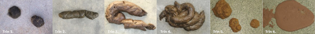 | 6 | Meget blød, uden form | Diarré |