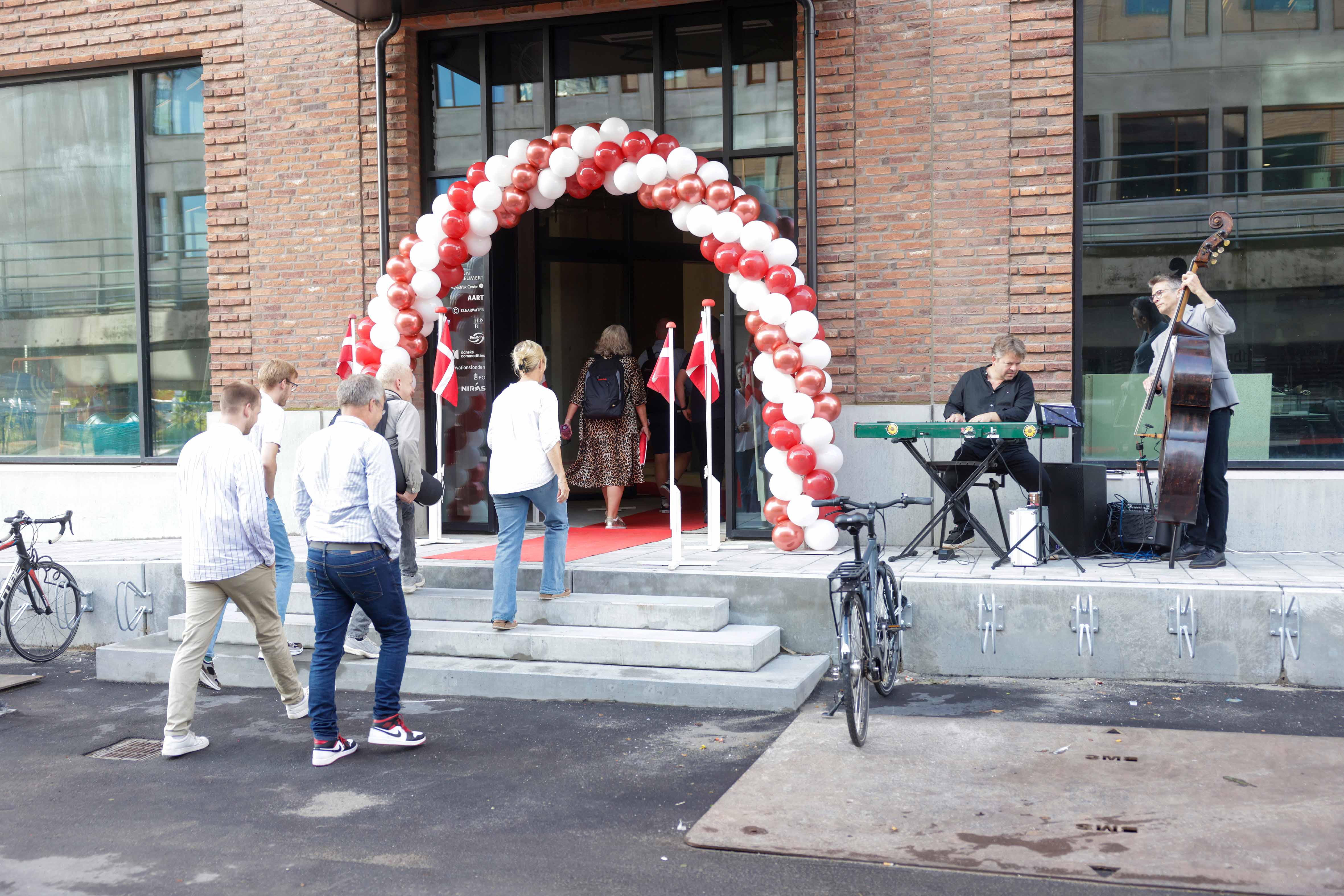 Indflytningsdagen blev markeret med ballonport, rød løber og levende musik. Kl. 10 bød NIRAS’ ledelse medarbejderne officielt velkommen i de nye omgivelser.