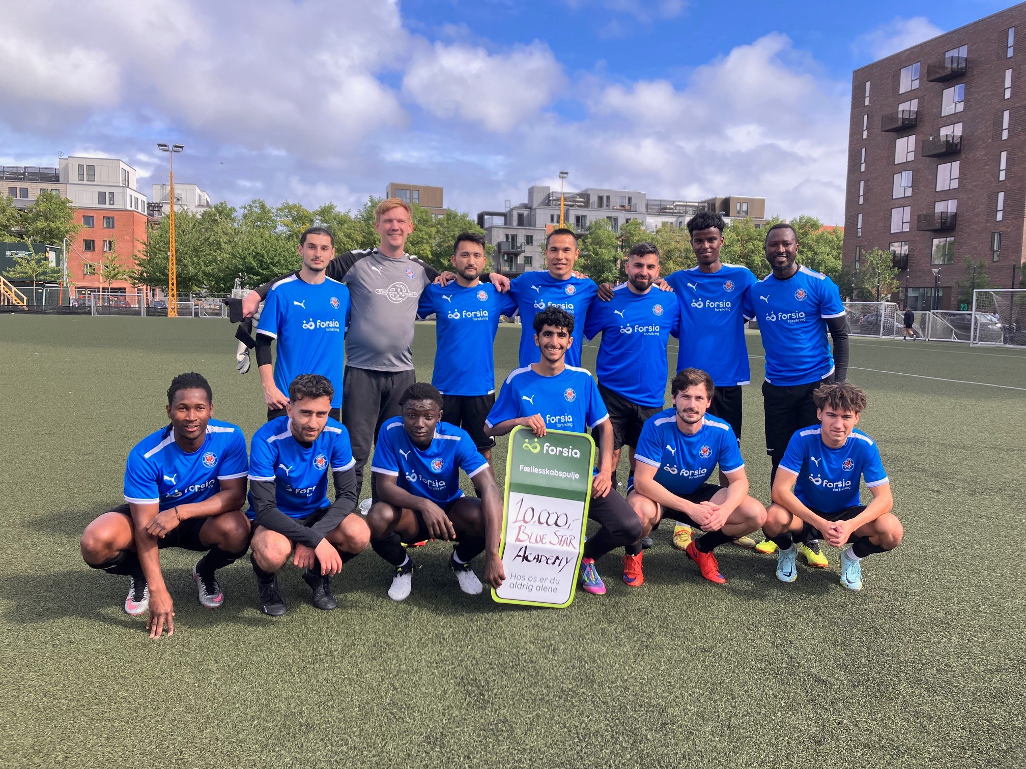 Hos Blue Star Academy i Valby handler fodbold om mere end mål og sejre. Her er fællesskabet drivkraften, og det blev endnu tydeligere, da klubbens seniorhold stolt kunne trække i nyt holdtøj – takket være en støtte på 10.000 kr. fra Forsia Fællesskabspulje.